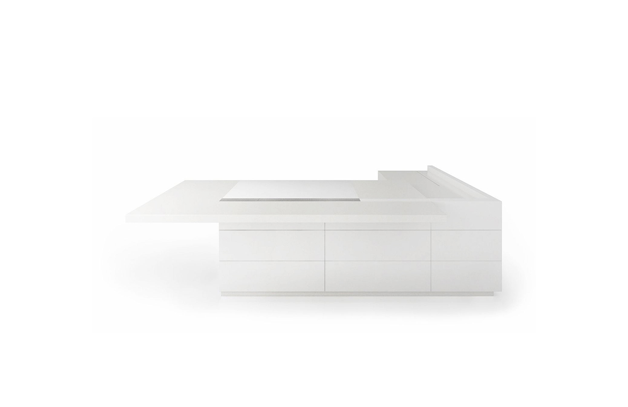 D6将多媒体科技元素完美融合于高级行政班台中。其桌面高度可智能调节,配合不同工作状态,轻松转换办公模式:或站立讨论,高效互动沟通、或专注思考、或根据不同使用者身材比例调节专属的舒适高度。