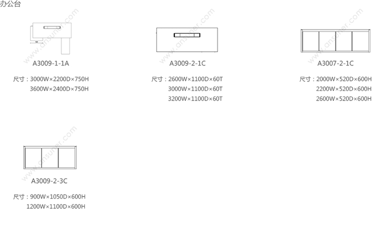 办公台 系列尺寸/示意图