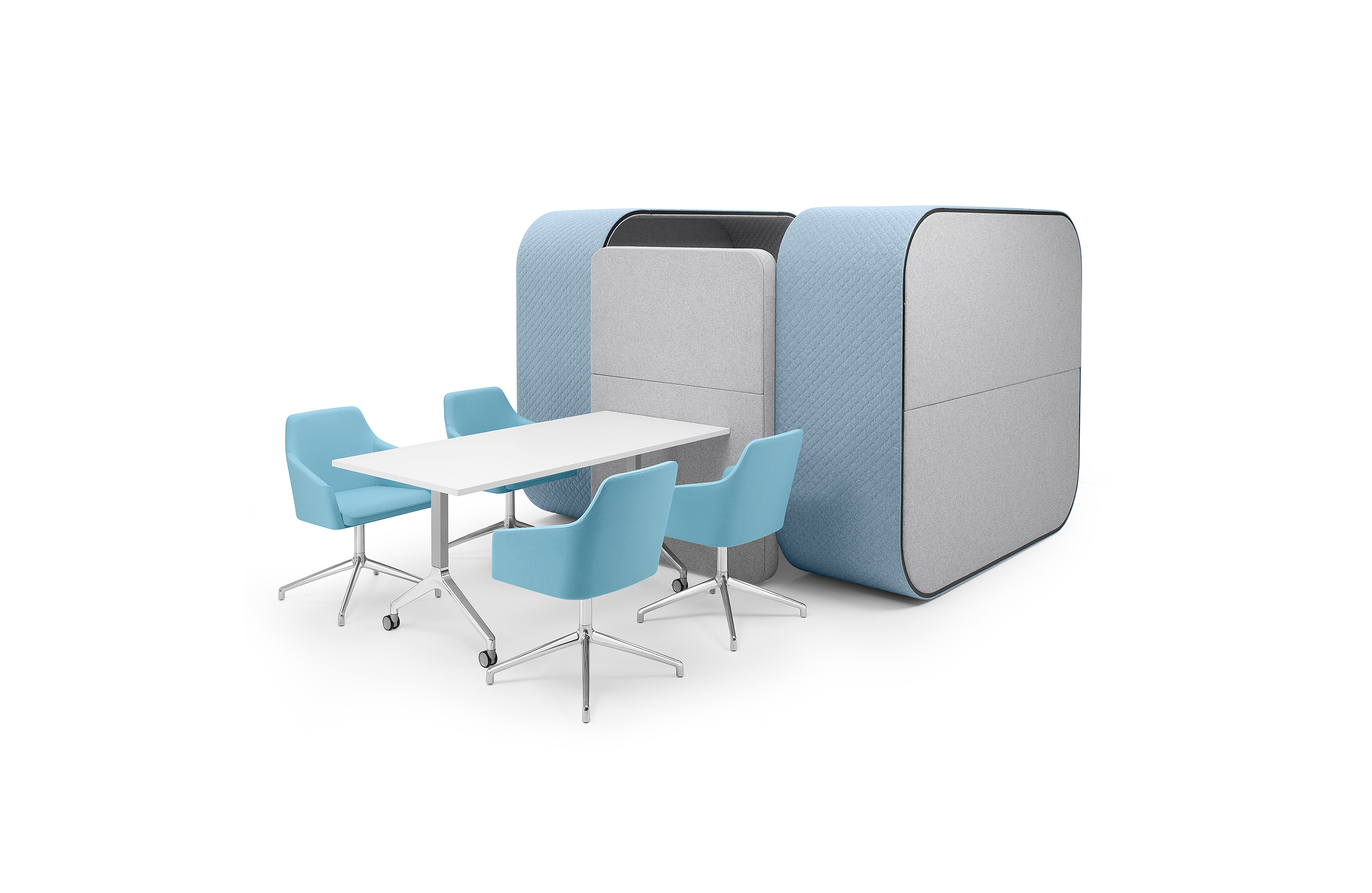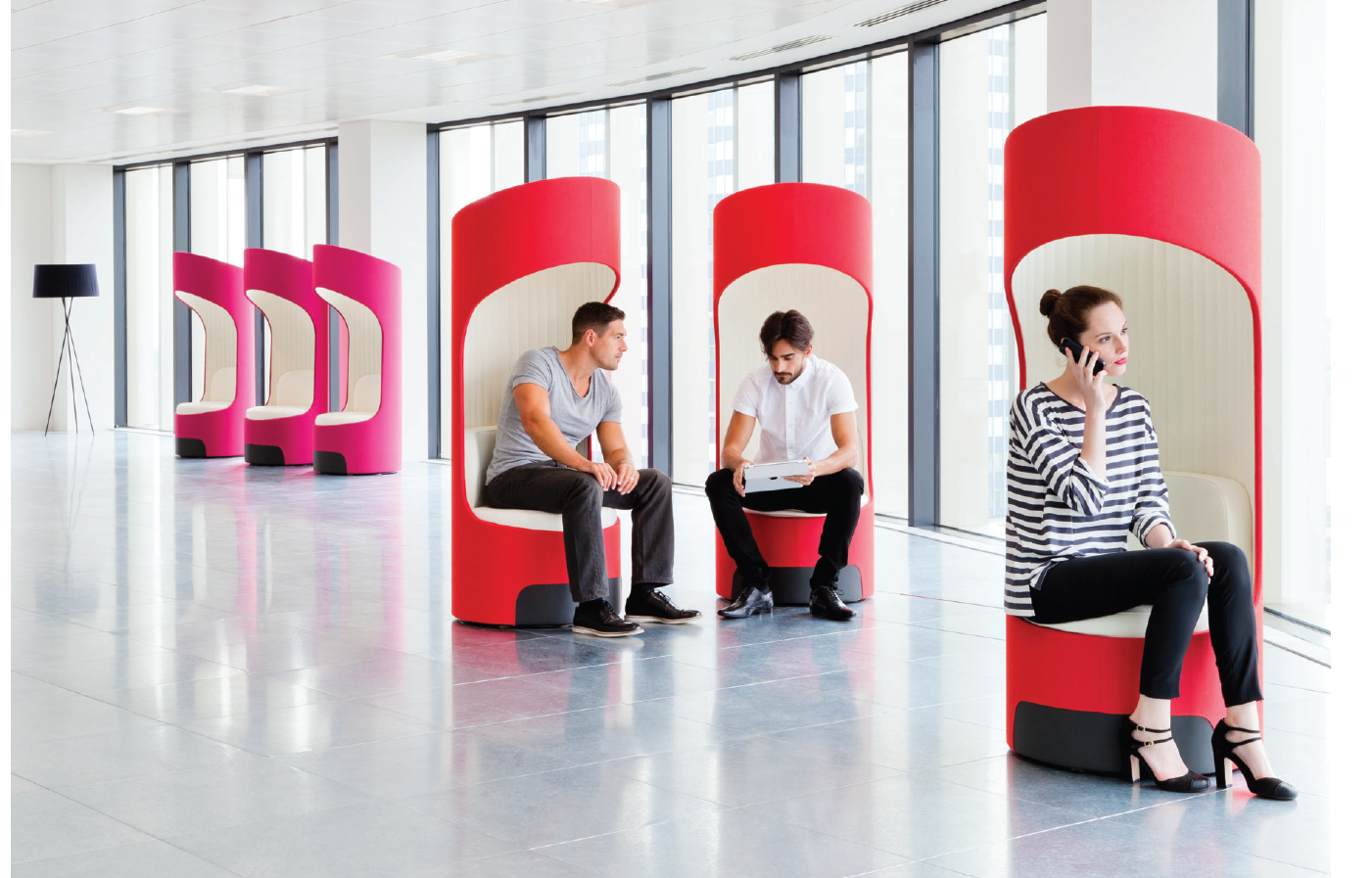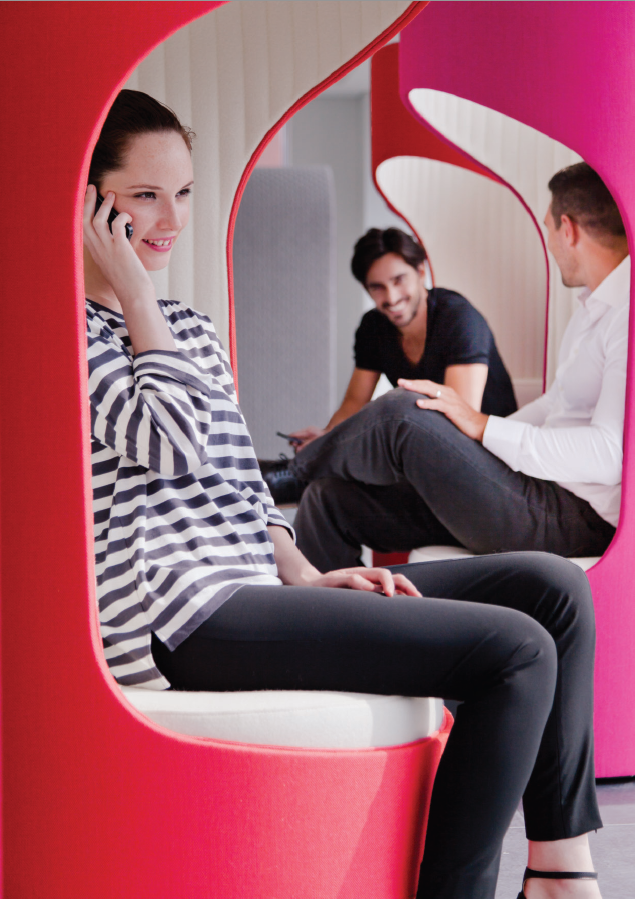 舒适且符合人体工程学要求的蚕茧(Cocoon)为非正式环境创造了理想的会议空间。这种高的、软垫的结构可以吸收周围环境的背景噪音,而不需要内部结构。