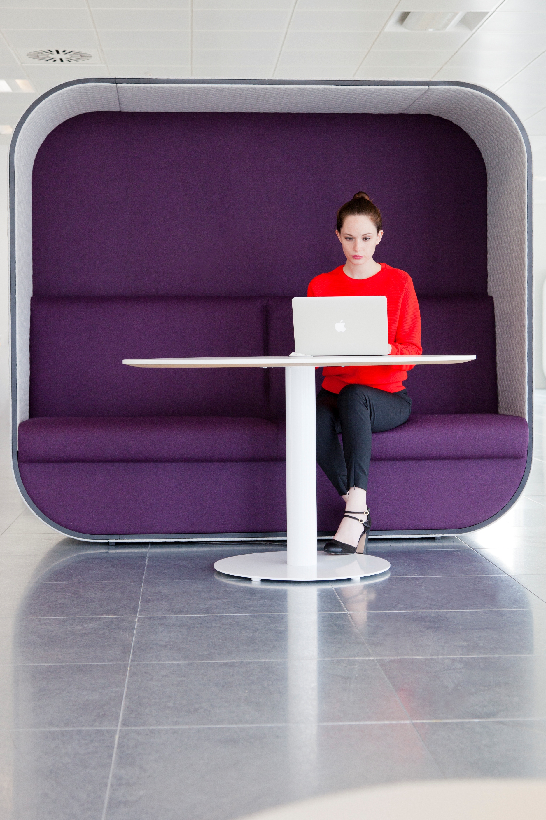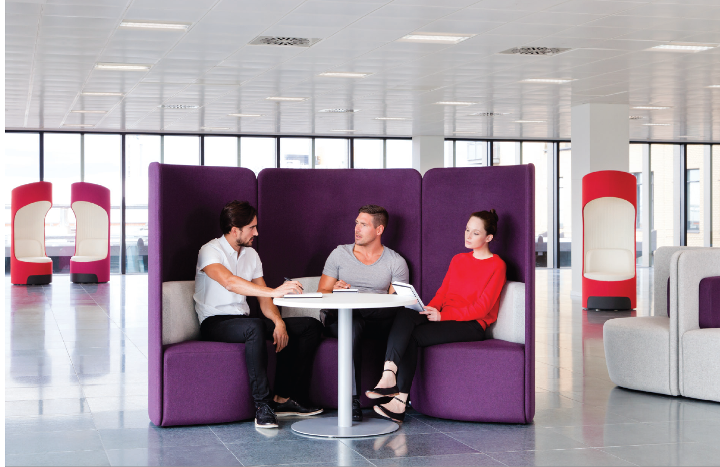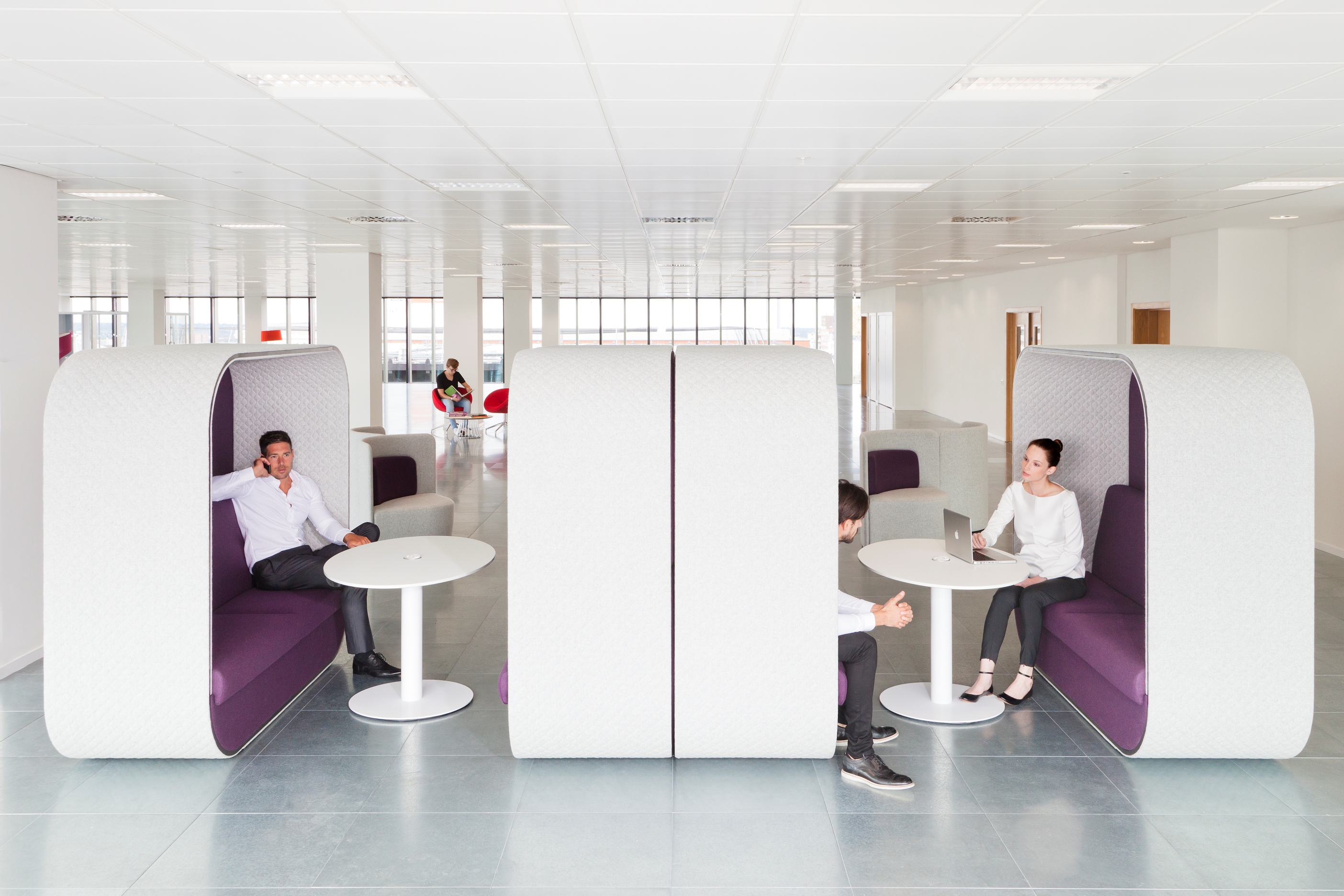 舒适且符合人体工程学要求的蚕茧(Cocoon)为非正式环境创造了理想的会议空间。这种高的、软垫的结构可以吸收周围环境的背景噪音,而不需要内部结构。