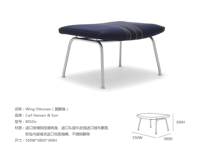 Wing Chair 除了保留了典型的設計精神,同時也跳脫往常的存粹木工製作,椅腳的支撐改以金屬材質製作。金屬的支架看似纖細的紅鶴挺立於微妙的平衡之中,極具時代詮釋性的作品,是20世紀中期的經典家具代表作。