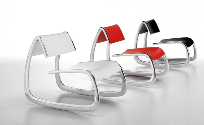 G-Chair(G椅)具有独特的风格、 舒适和独特的个性,其造型就像一个雪橇,富有趣味的造型相当吸引目光,因而引发积极的内涵,舒适但同时也充满了幸福和愉快的正能量心情。制作采用压铸铝合金框架、聚氨酯坐垫及靠背,有白色,黑色和红色的铝制框架可供选择。