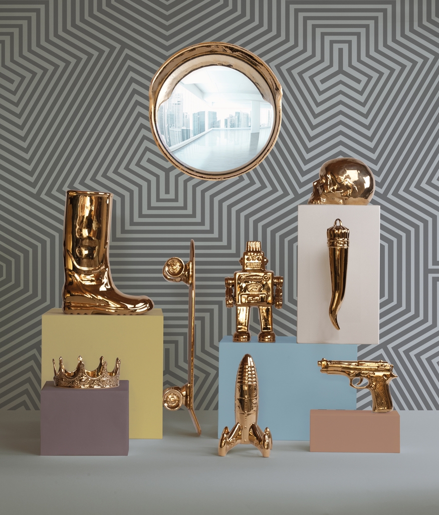 与Memorabilia系列一样,Memorabilia Gold是一系列独立装饰品,让人想起文化或历史事件,这也增加了兴趣点。 “我的滑板”实际上被设计用作食品拼盘,用于寿司或冷肉等食品,体现了Seletti对功能性艺术的热爱!