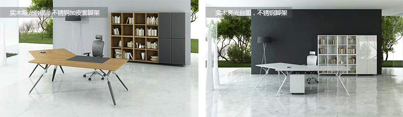 1、桌面材质,多种选择:实木哑光台面、实木亮光台面、烤漆玻璃台面、皮台面;