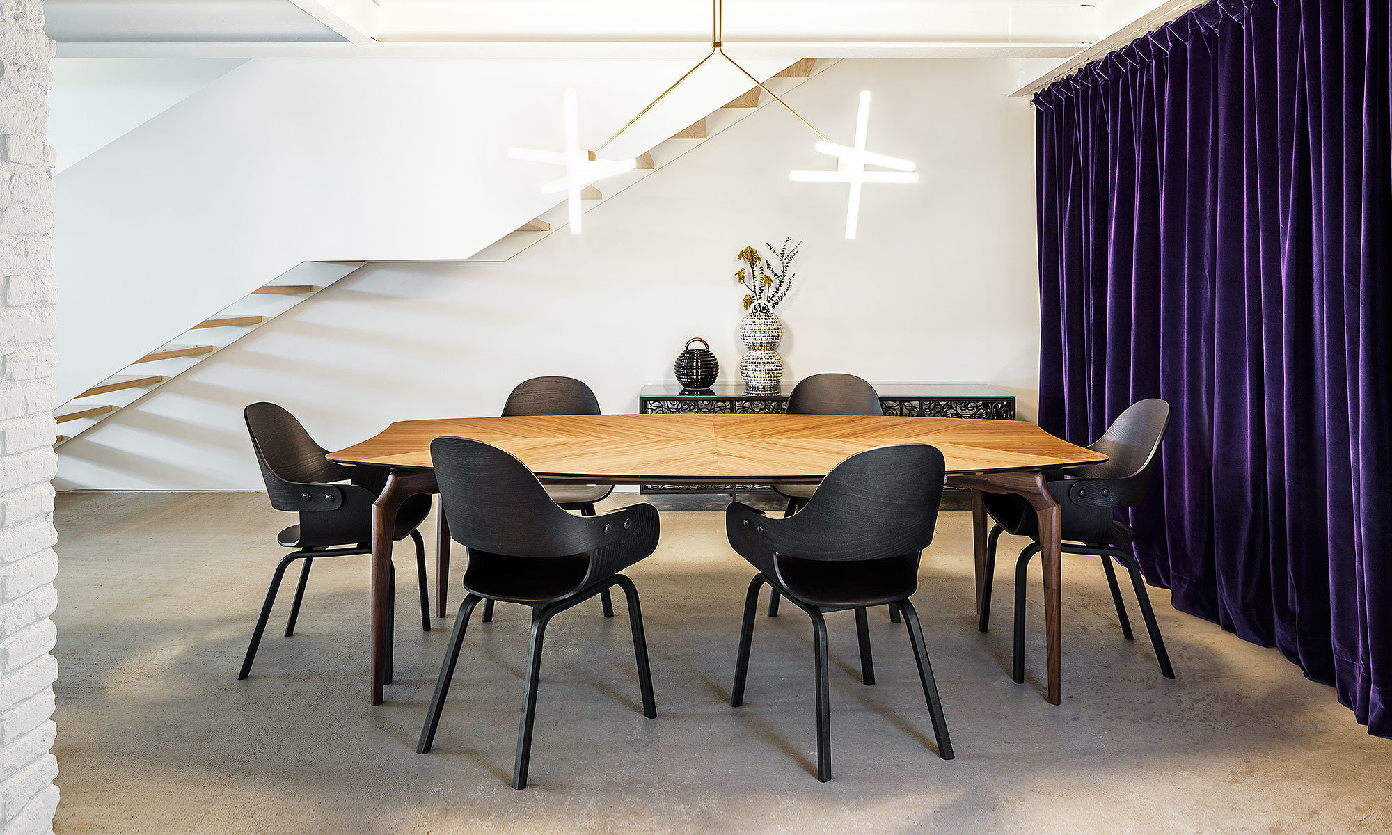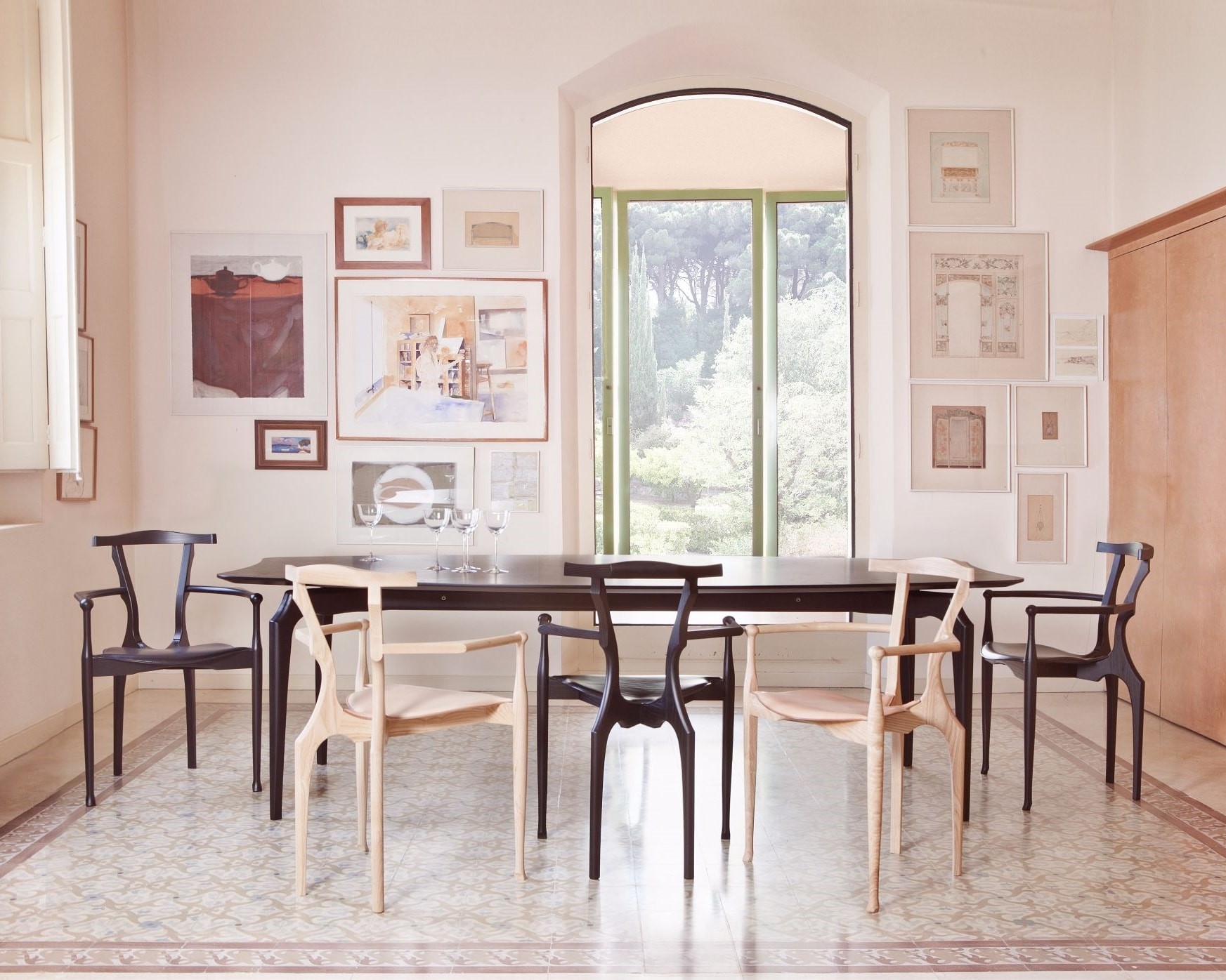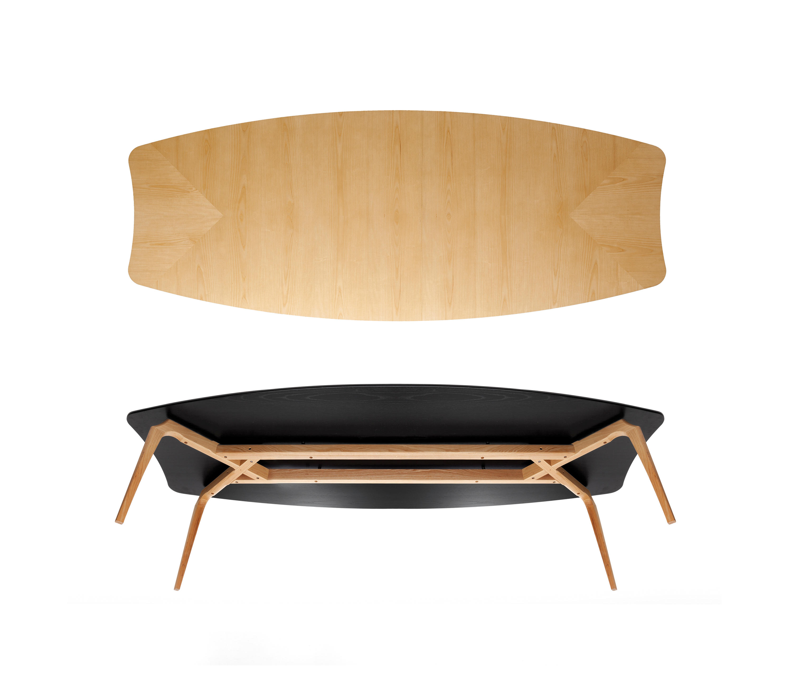 Gaulino桌子 的结构为实心白蜡木。MDF顶部为天然白蜡木贴面。可用表面处理:天然或有色橡木或黑色清漆。边缘和顶部下部始终为黑色。