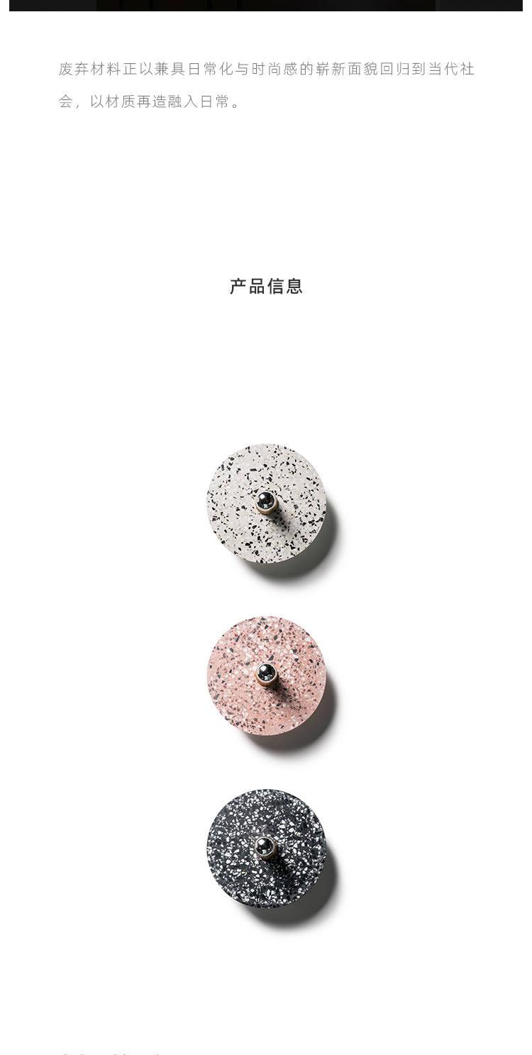 以材质再生为基本手段的水磨石系列,将陶瓷废渣再生成简洁形态的日常性家具,以衍生产业的形式回归到大众层面的使用中。 中国佛山,这片拥有全球最大最成熟的陶瓷产业链和产业集群的建筑陶瓷工厂的土地,承载着每年400万吨陶瓷废弃物带来的环境污染。 以材质再生融入日常,不仅是激发商业价值的大胆尝试,是环保理念的日常化实践,更是对自我尊严的基本坚守和追求,我们探寻陶瓷跨越地域局限的一种当代突破!