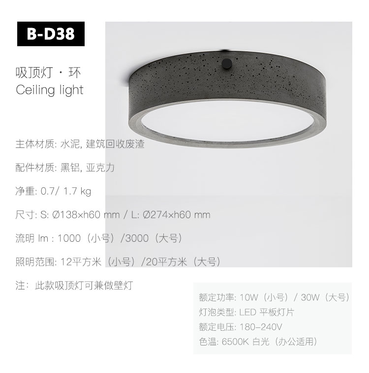 “环”没有夸张的造型与华丽的装饰,安静地为我们点亮一个个空间,它的美来自水泥材质的本身,水泥材质安静、低调、包容可以更好的在空间中搭配。