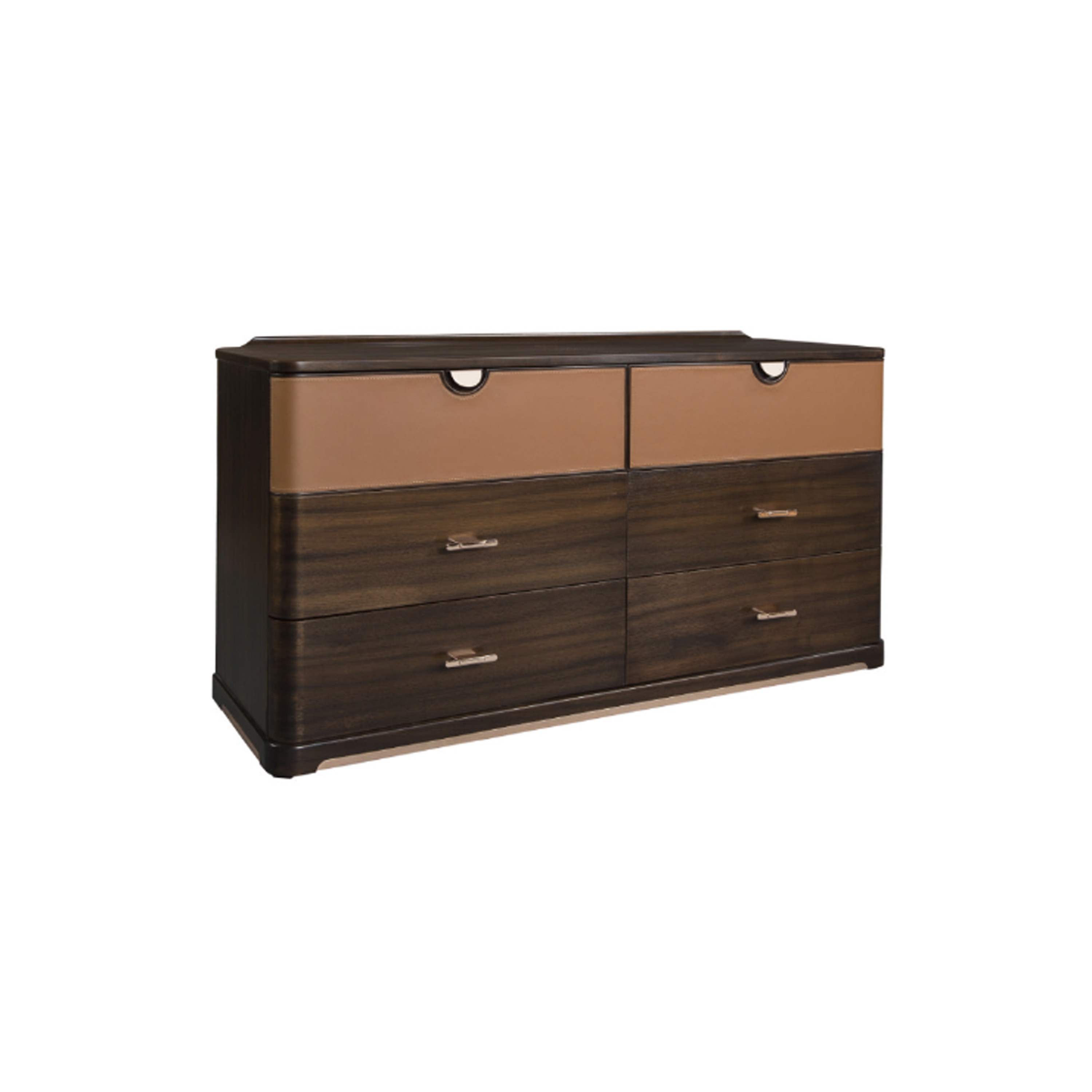 1.整体造型简洁精巧,搭配不同铜饰造型把手,韵味与价值感兼具。 2.电视柜采用六个抽屉设计,储藏功能强。 3.双色设计,对比明快,增加视觉跳跃感与家具层次感。