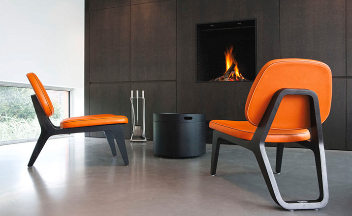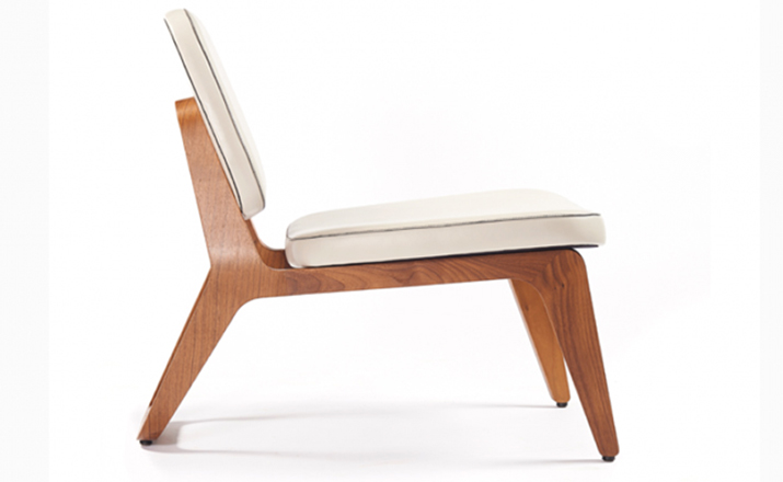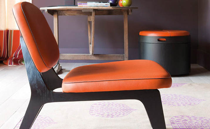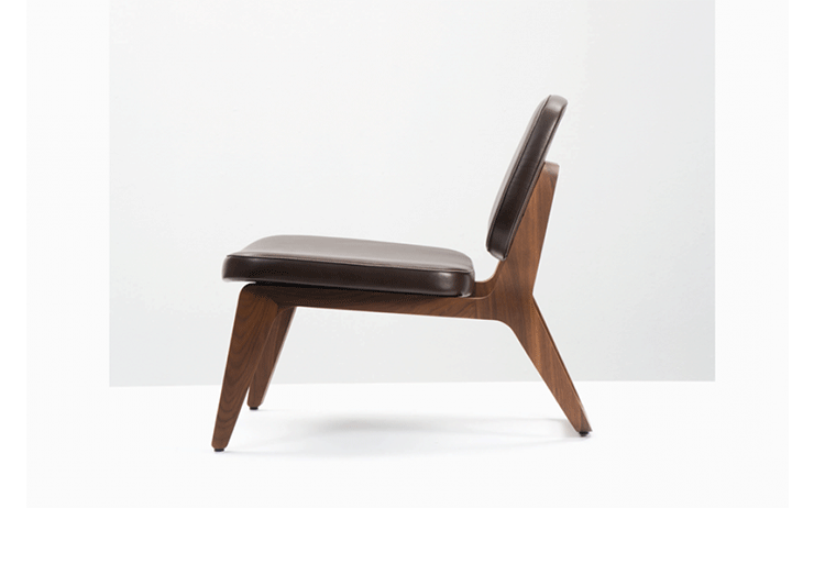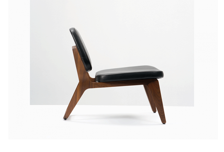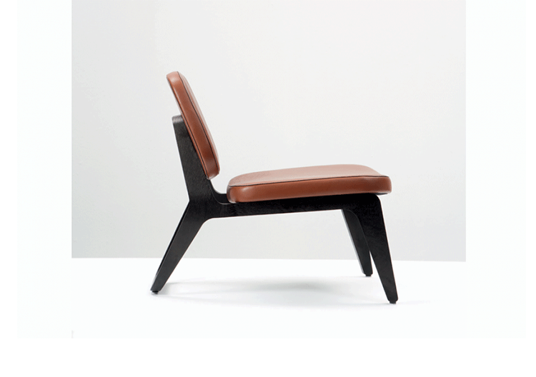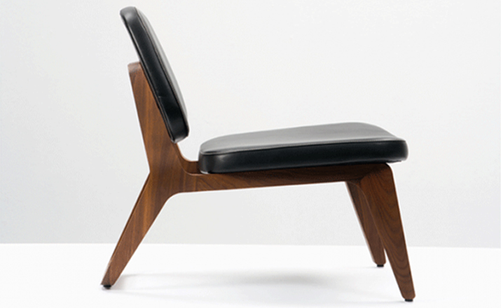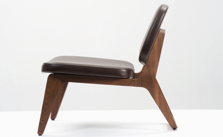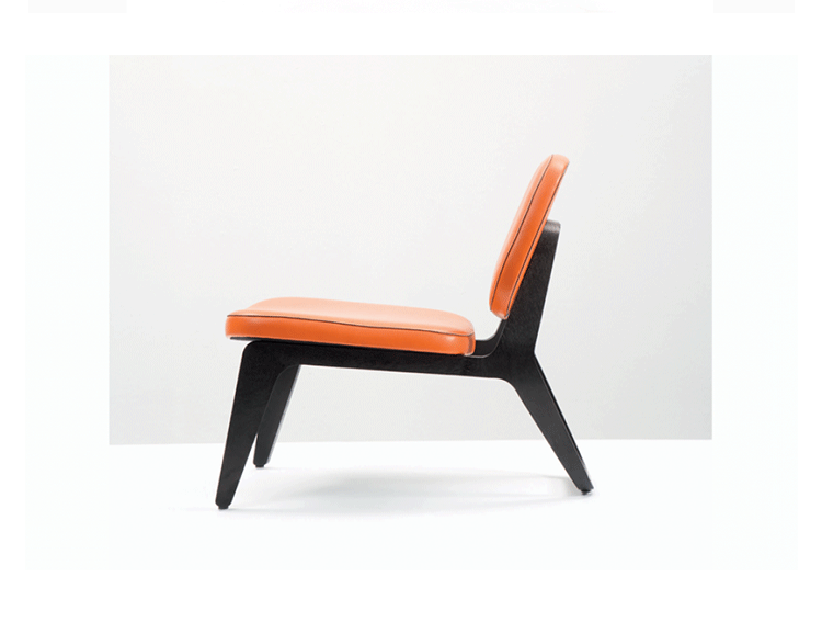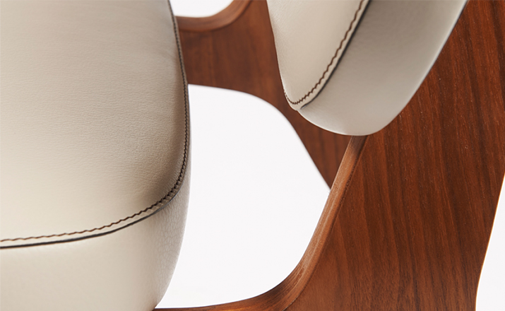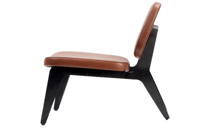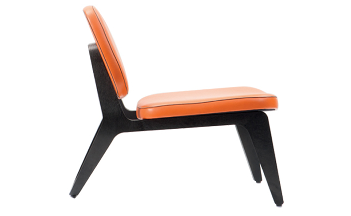 Combining both of Wildspirit’s preferred materials, Moon Lounger is a low lounge chair“with a blink to the avant-garde design of Charles Eames.” With its bright leather upholstery and its dark wood frame, Moon Lounger is like Saturn in a deep dark galactic universe.The curve of the legs gives the chair various profiles depending on one’s point of view.Always seductive,the base“provides a soft feminine touch”with its graceful parabolic arcs.All of Moon Lounger’s shapes recall space:the ovals and ellipticals of the frame and cushions put me in mind of orbit trajectories and spinning planets.
