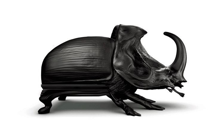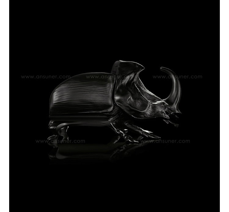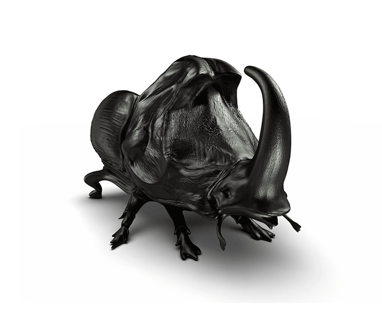 "西班牙设计师 Maximo Riera 设计了一组包括章鱼、犀牛、海象、狮子等在内的 15 件动物造型座椅系列皮椅。这个系列的动物椅集合了不同的物种,从哺乳动物到爬行动物,甚至包括昆虫。每个设计都保留了动物的自然活力,同时又准确还原动物的外观特征。这些动物椅的初衷是一种尝试,希望以动物的栖息来反映和捕捉大自然的美,并向我们星球上的整个动物王国致敬。设计师除了表现动物的野性美,也在善意的提醒人们要维持生态的平衡,尤其对濒危物种多加关注,以实现人与自然的相互依赖和谐共存。这次他的动物王座再添一员——限量版甲虫椅(Beetle Chair)。不要会错意,这个甲虫既然能成为暗黑帝国的一员,当然也不会是可爱傻气的七星瓢虫造型,这个甲虫长著大大的角,背上还突起坚硬的盔甲,六只带刺的脚配搭著獠牙,又是一副狰狞面孔,和之前的设计非常统一。甲虫椅子中集合内一个新的转折,欢迎广大昆虫物种,这是地球上最多样化的群体动物。 关于设计,座位部分位于外壳内覆盖翅膀,形成骨骼和保护动物。 甲虫的形态适应的审美功能,允许框架的构成和外在的数据被认为没有任何中断。"