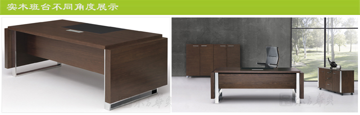 ※ 时尚班台不同角度展示图,实木挡板,实木侧板,不锈钢脚架,显示出继厚实稳重,也时尚简约!