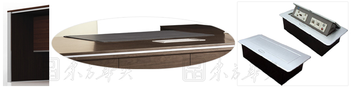 ※ 上图为稳重厚实的侧脚板展示:图上展示为中纤板贴木皮,开放漆工艺,精湛的做工! 仿皮桌面写字板:不同形状的仿皮写字板,给你提供舒适的办公环境,也可做活动写字板,需要的时候铺上, 不需要的时候拿下,手动式线盒。