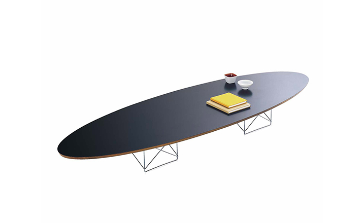 Charles和Ray Eames 夫妇在1951 年设计大型桌子时考虑过很多种形状,但是他们最终选择了椭圆形。这让人很容易联想到冲浪板。这也和Eames 夫妇住在位于加利福尼亚州、太平洋边的公寓和工作室有关,从这里可以眺望到他们喜爱的大海。Eames 椭圆桌的特点是低和长,可以放在长沙发或几张椅子前面,非常舒适。您可以将它放在卧室、会客室或是办公休息室,在宽敞的、不拘一格的桌面上,陈列精美的艺术品、新鲜的花、杂志或是专业书籍。"
