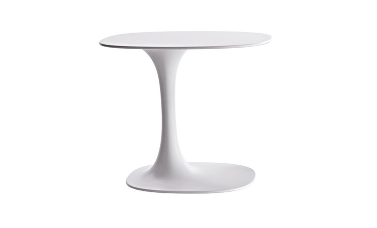 Fukasawa,优雅和严谨,他设计了一个创新的休闲桌子,可以使用到几乎任何地方,无论是客厅还是卧室。所使用的材料,白色水晶,可以创建一个大的、灵活的形状,基础和桌面是一个独特的部分。