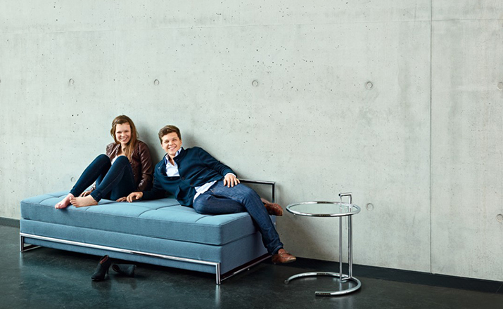 In the 1920s Eileen Gray experimented with various versions of the design of the Adjustable Table E 1027. As she changed the look of the table with a black metal top as an alternative to the crystal glass top, she also selected black as the colour for the frame. The matte black lacquer clearly emphasises the lines of the table and its form – a version she considered especially elegant. Together with Zeev Aram, Eileen Gray developed her Adjustable Table E 1027 for production in the 1970s; they both decided to produce the chrome-plated version first, with the intention to introduce the table frame in black at a later date.