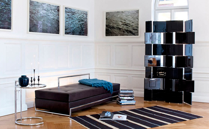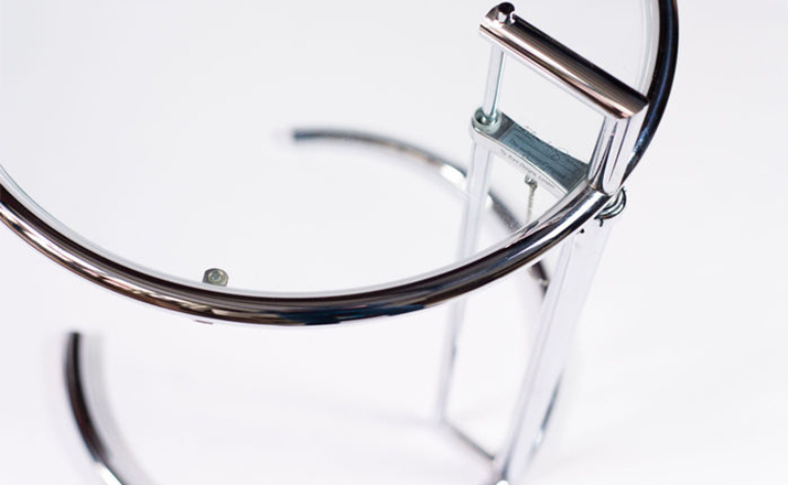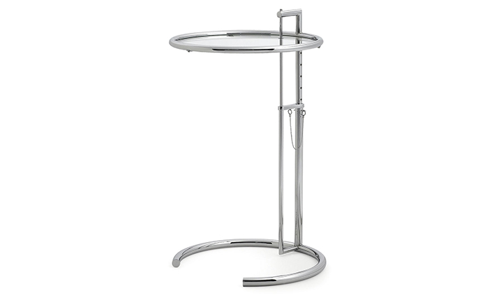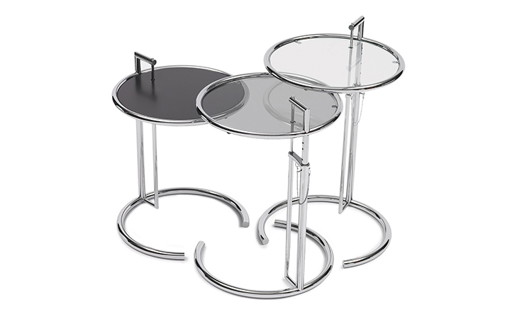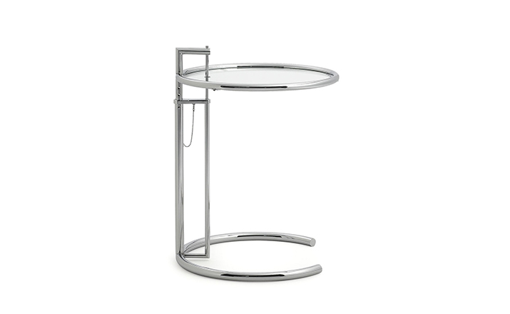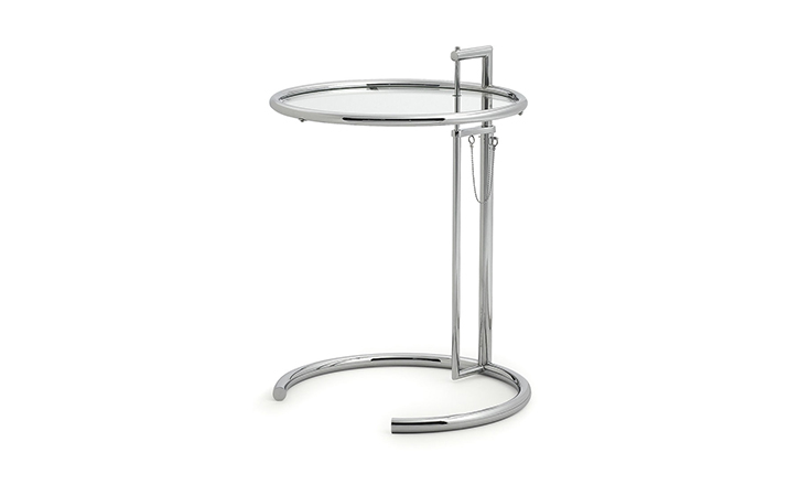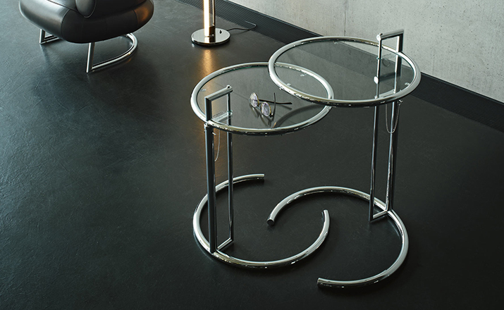 In the 1920s Eileen Gray experimented with various versions of the design of the Adjustable Table E 1027. As she changed the look of the table with a black metal top as an alternative to the crystal glass top, she also selected black as the colour for the frame. The matte black lacquer clearly emphasises the lines of the table and its form – a version she considered especially elegant. Together with Zeev Aram, Eileen Gray developed her Adjustable Table E 1027 for production in the 1970s; they both decided to produce the chrome-plated version first, with the intention to introduce the table frame in black at a later date