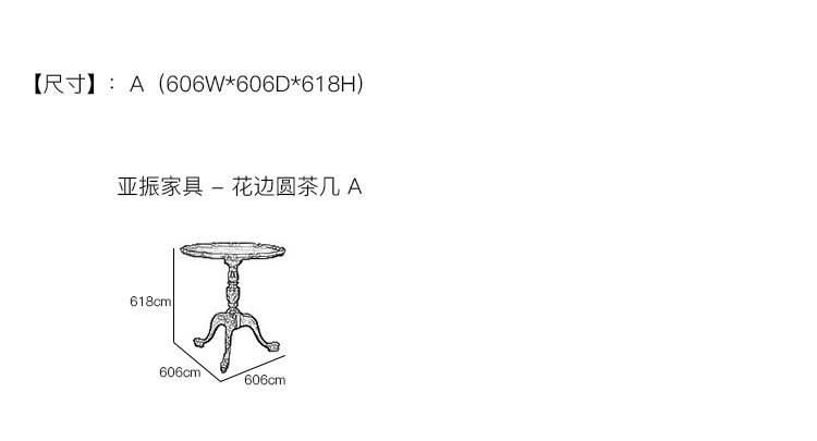 亚振家具 - 花边圆茶几 产品尺寸/示意图