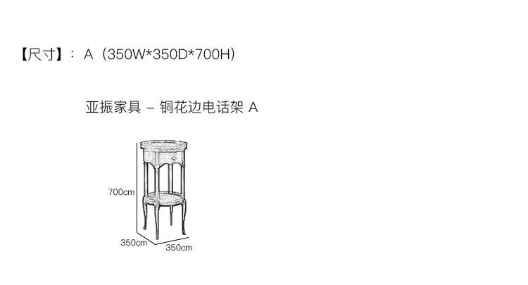 亚振家具 - 铜花边电话架 产品尺寸/示意图