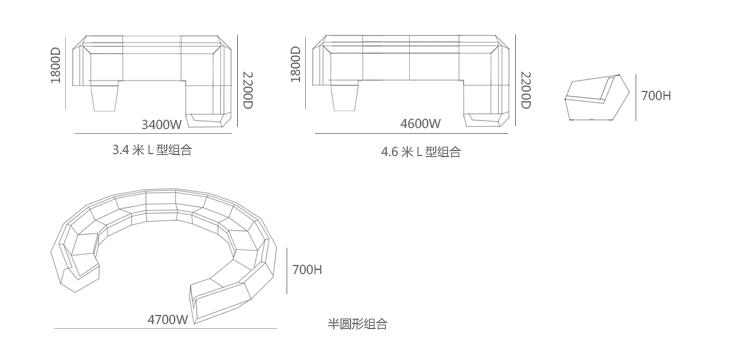 sectional 3.4: 3400 w | 1800 d | 2200 d | 700 h