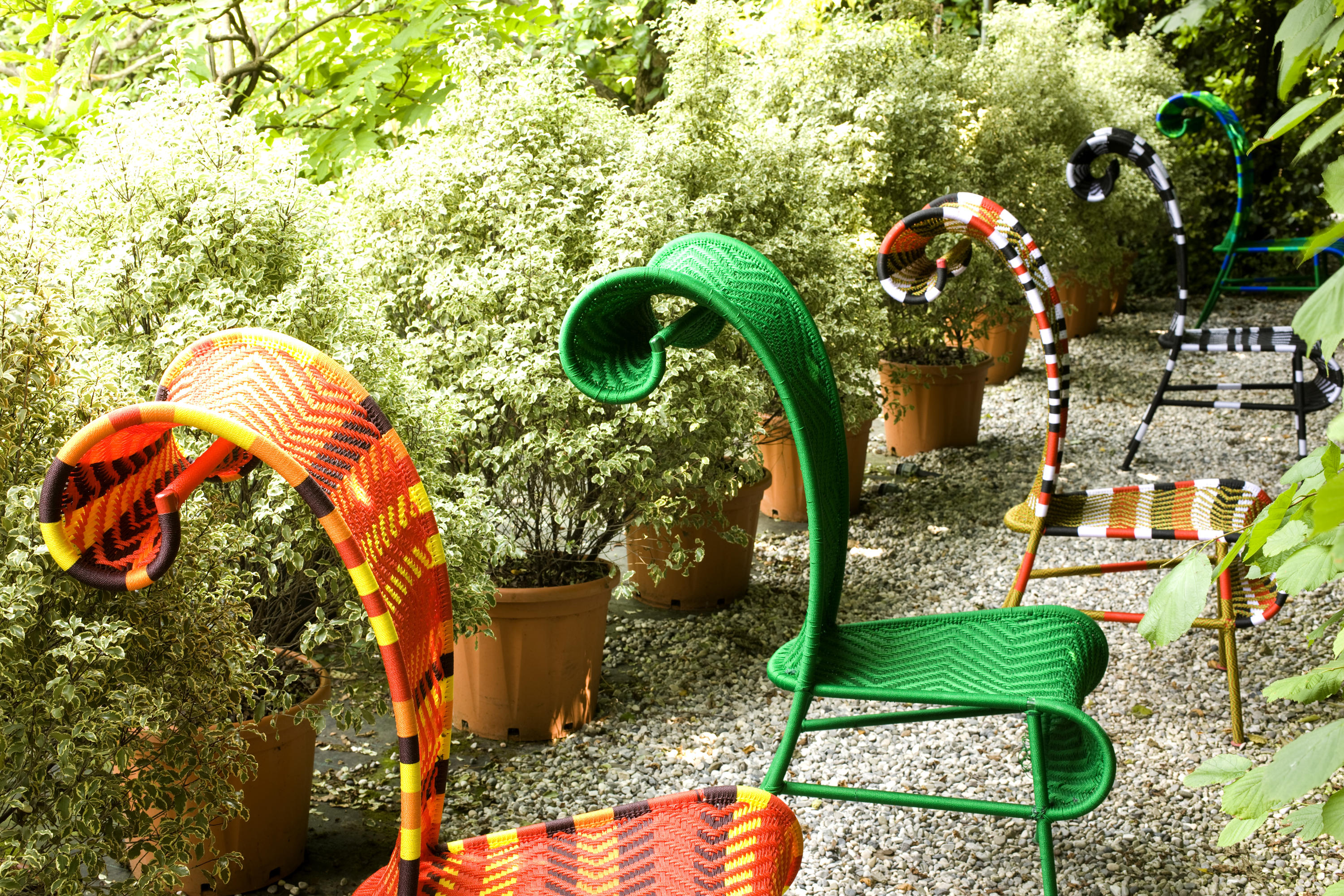 座椅使用通常用于捕鱼网的梭织螺纹, 其设计都是不同的和原始的,就像它们的名字一样。手工工艺, 是人类有缺陷的完美。