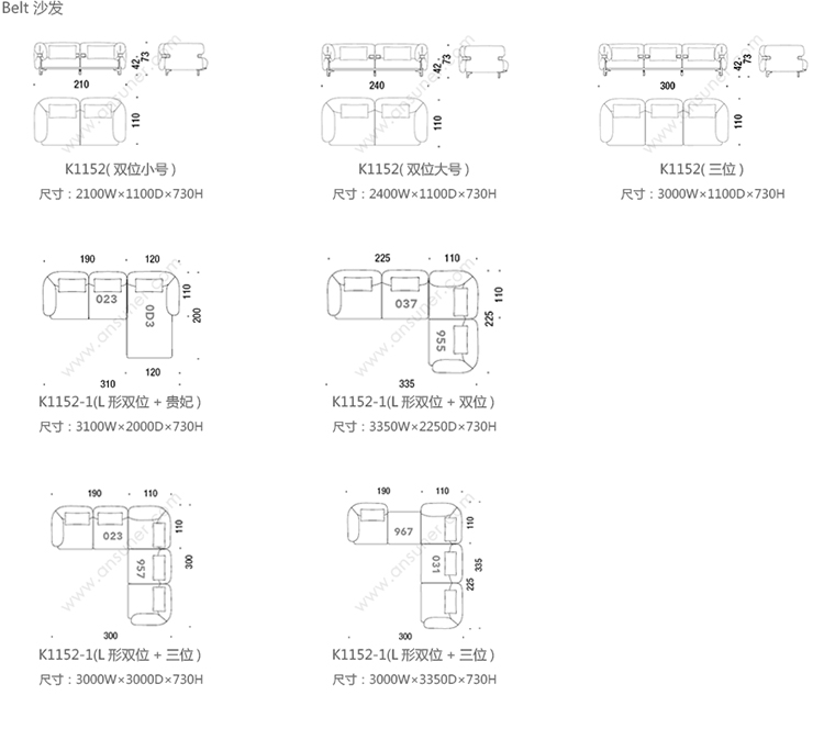 Belt 沙发 系列尺寸/示意图