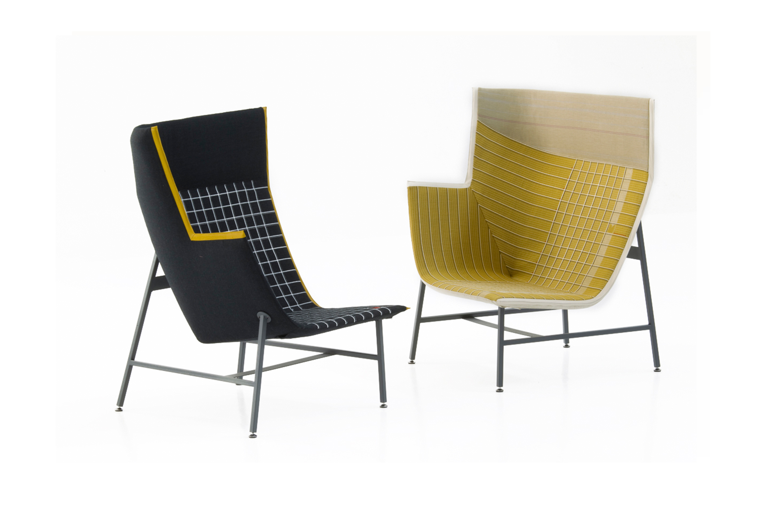纸飞机起源于一种基于图形纸的织物设计:它的形状来自于纸张的折叠和造型,作为对形式和结构的探索,创造出角度、线条和多边形。它看似简单,却需要高超的裁剪技巧:面料的线条必须与椅子的几何结构完美结合,这意味着没有犯错的余地。