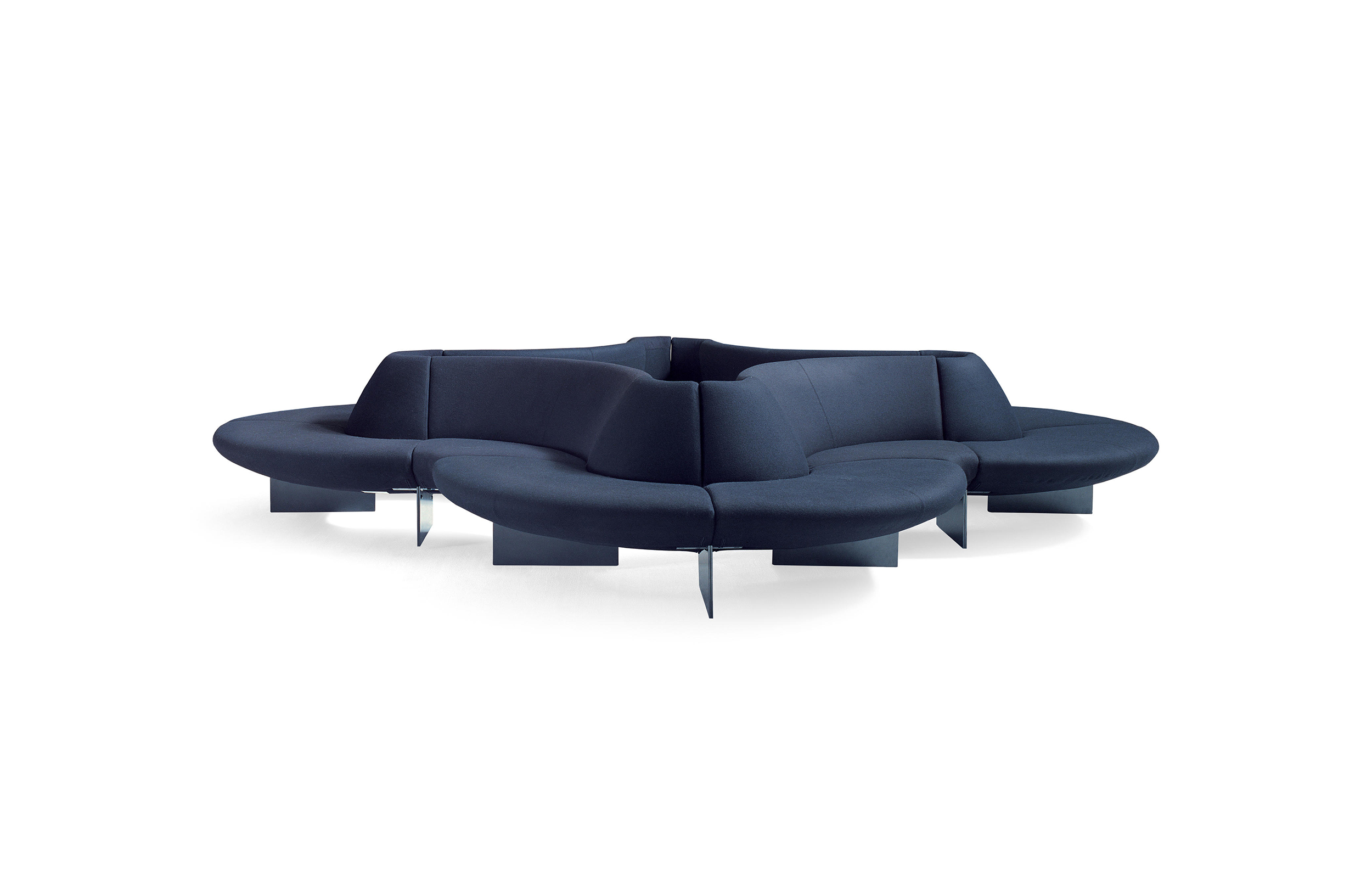 曲线优美,轻盈,极具雕塑感。汤姆迪克森的模块化系统对于等候区和大空间来说是很棒的选择。一个极简主义的系统,它可以适应各种各样的设置,在角落里、在中心区域或者在户外使用。它的名字是完美的,使用防火的聚氨酯火焰使它更适合于公共空间。钢脚的高度是可调的。