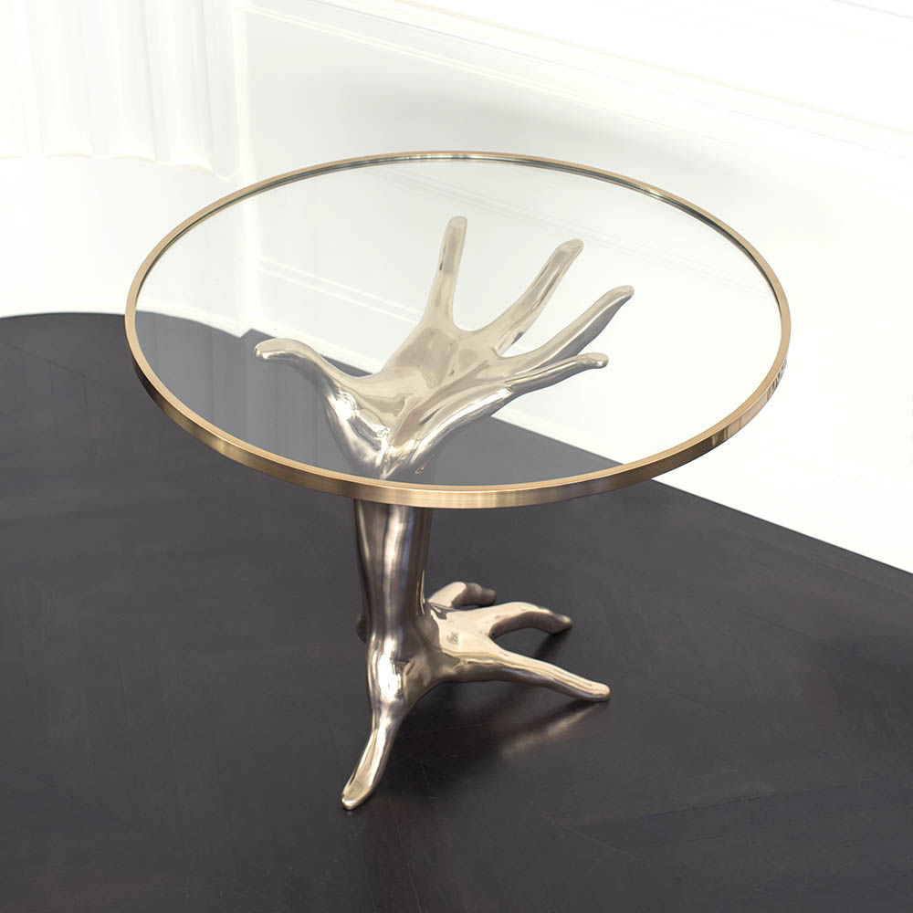 豪华雕塑的Dichotomy桌是一款令人惊叹的独特陈列桌,灵感来自古典的比喻装饰。 底座采用青铜铸造,手工精心打磨。 钢化玻璃顶部采用匹配的青铜饰边。 直径36英寸,这张桌子是一个完美的入口,或强调一个正式的座位群。 Dichotomy桌有青铜或油擦青铜饰面。