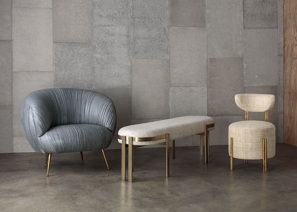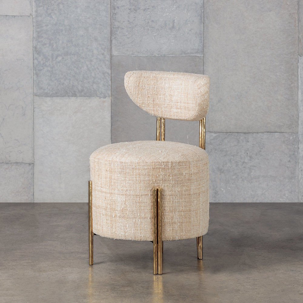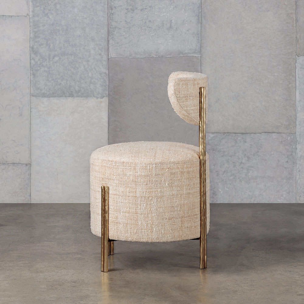 Melange Vanity Stool身材娇小但形式大胆,是细致入微的现代设计的典范。 这款凳子采用实心铸造黄铜腿和手工制作的手工制作而成,并采用轻微抛光的抛光黄铜色。 软垫座椅和靠背有各种精选面料和皮革可供选择。