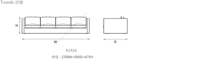 Tuxedo 沙发 系列尺寸/示意图