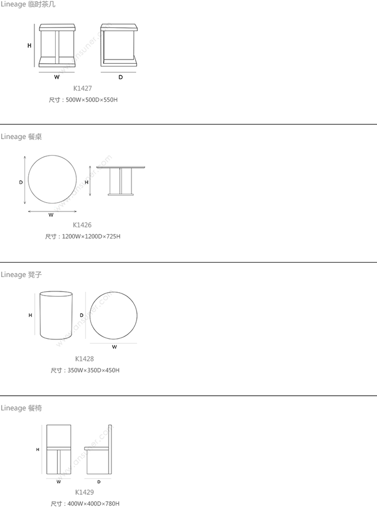 Lineage 临时茶几 系列尺寸/示意图