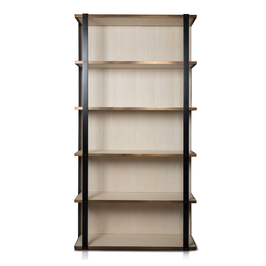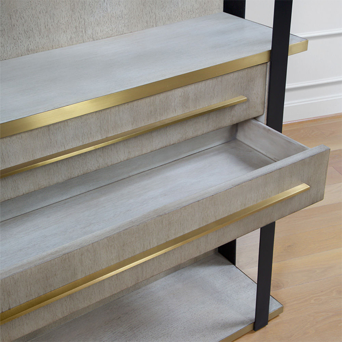 凭借Kelly对混合金属和材料并列的喜爱,富兰克林橱柜由黑色钢架,漂白的胡桃木制成,架子上饰有抛光青铜。 橱柜配有三个抽屉,四分之一英寸铣削青铜拉手,外观大胆,精致,现代。