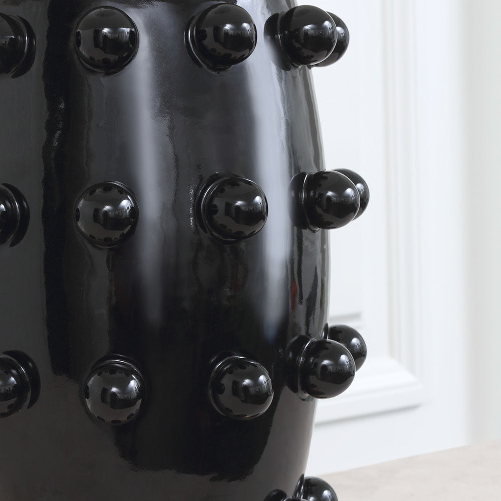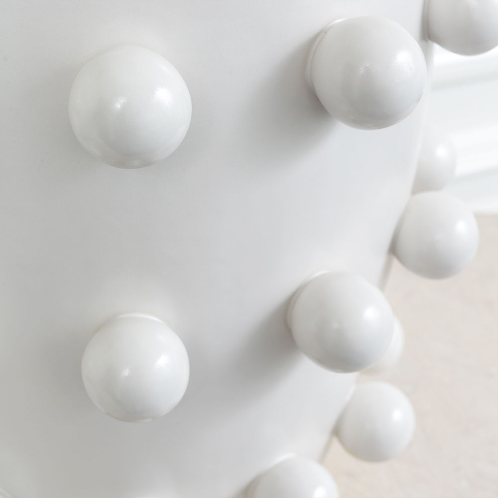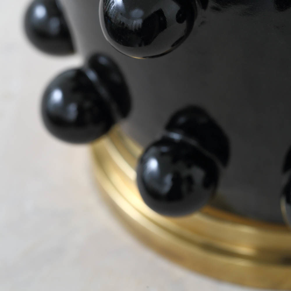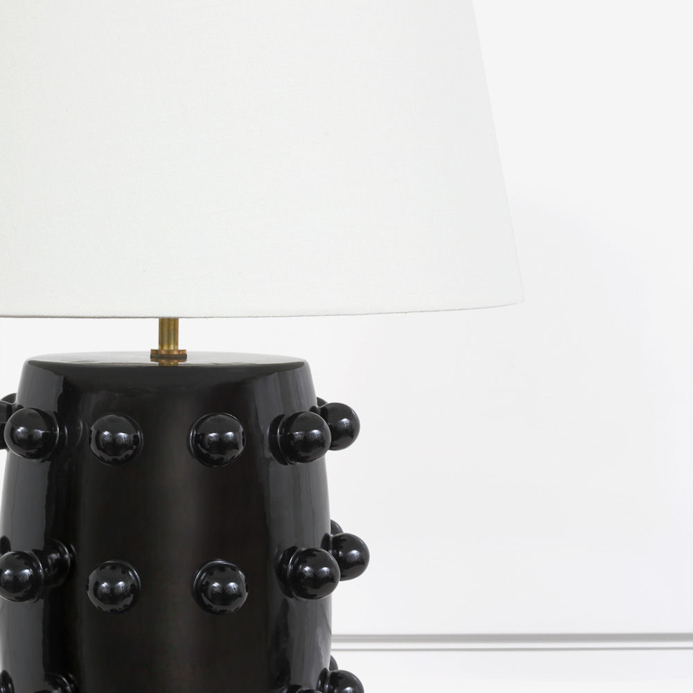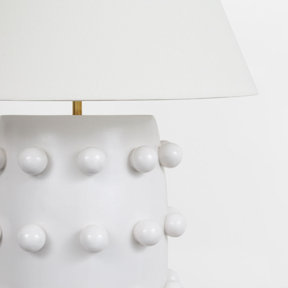 Linden台灯采用精美雕刻的陶瓷底座上的重复装饰球体,充满趣味与精致的对比。 这款台灯采用亚麻色调,古董抛光黄铜细节,并采用黑色或白色石膏饰面。
