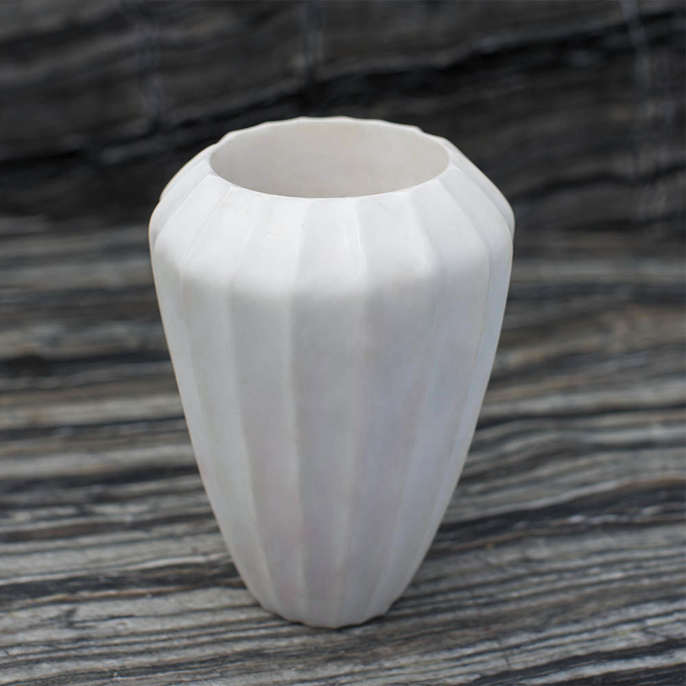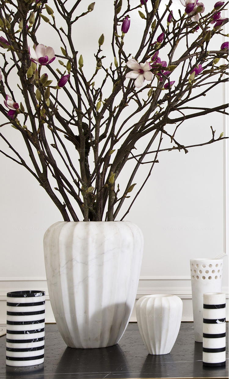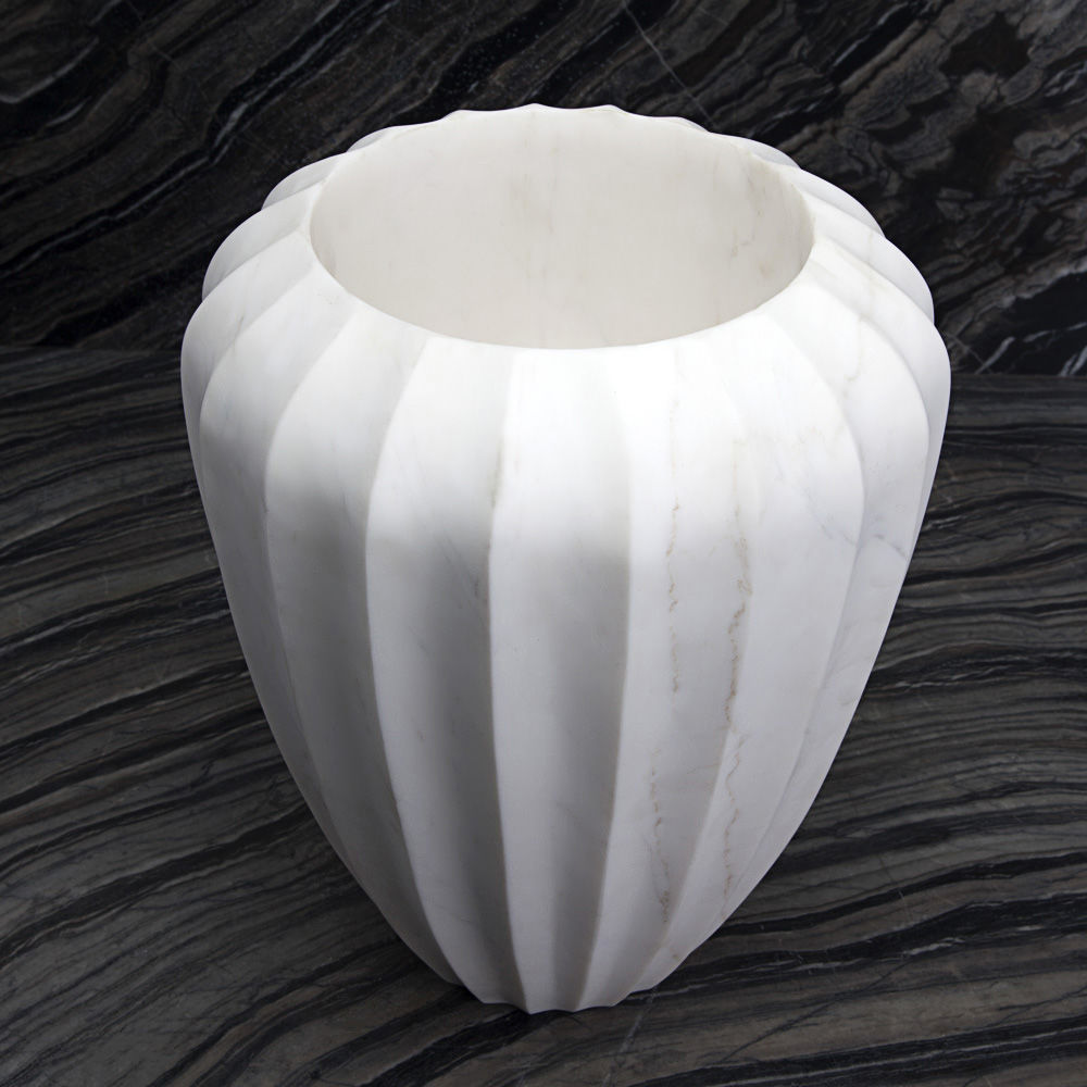 经典的手工雕刻凹槽大理石花瓶是一款优雅而富有戏剧性的作品,可容纳鲜花或独立单品。 这款实心大理石花瓶有两种尺寸可供选择。