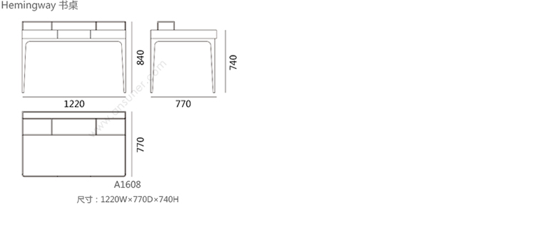 Hemingway 书桌 系列尺寸/示意图