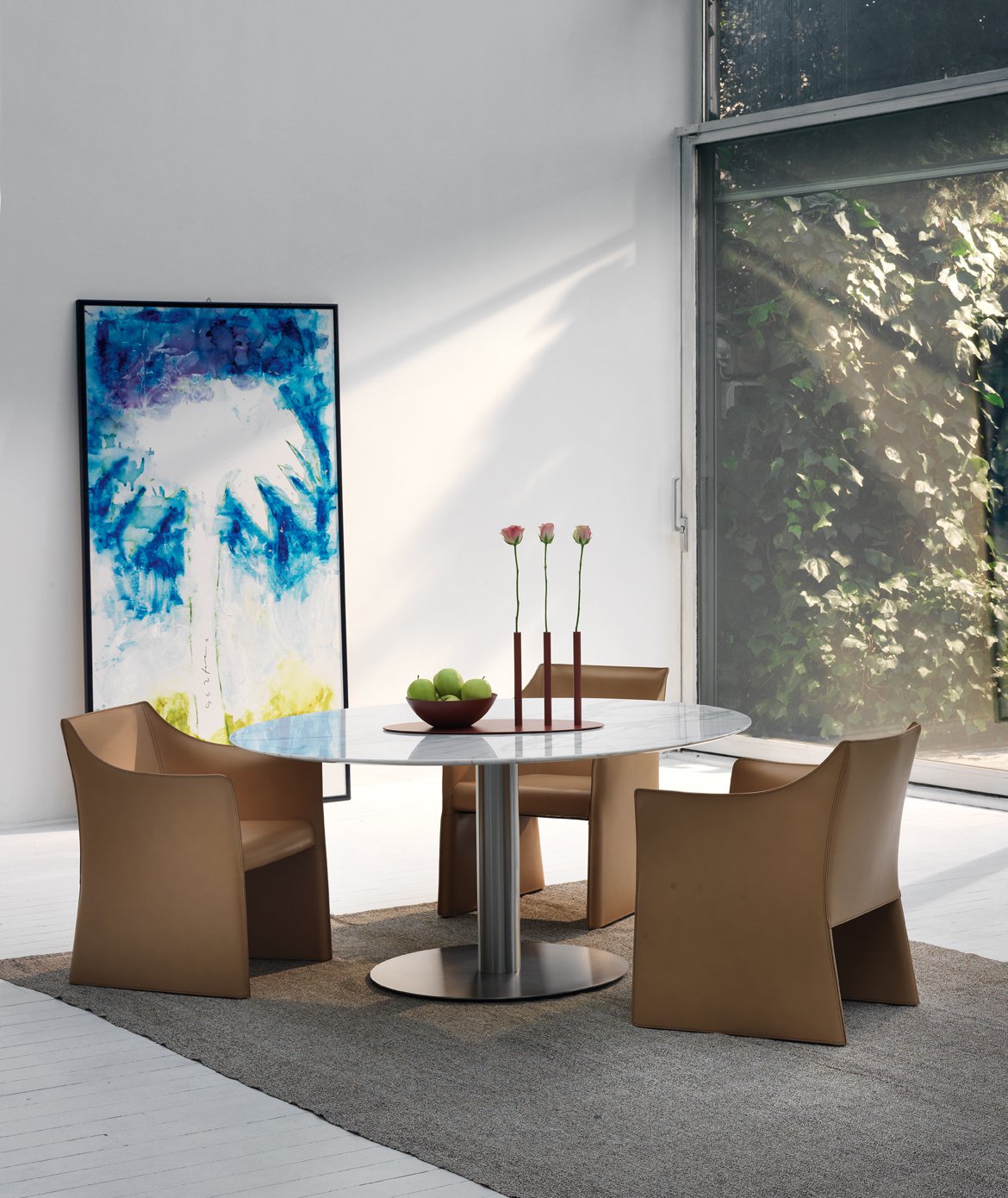 餐桌采用缎面或哑光漆面不锈钢制成,白色或无烟煤色,顶部采用macroter或光面漆木,所有颜色,天然橡木,雕像大理石。 底座完全可拆卸,顶部可以是圆形或方形。