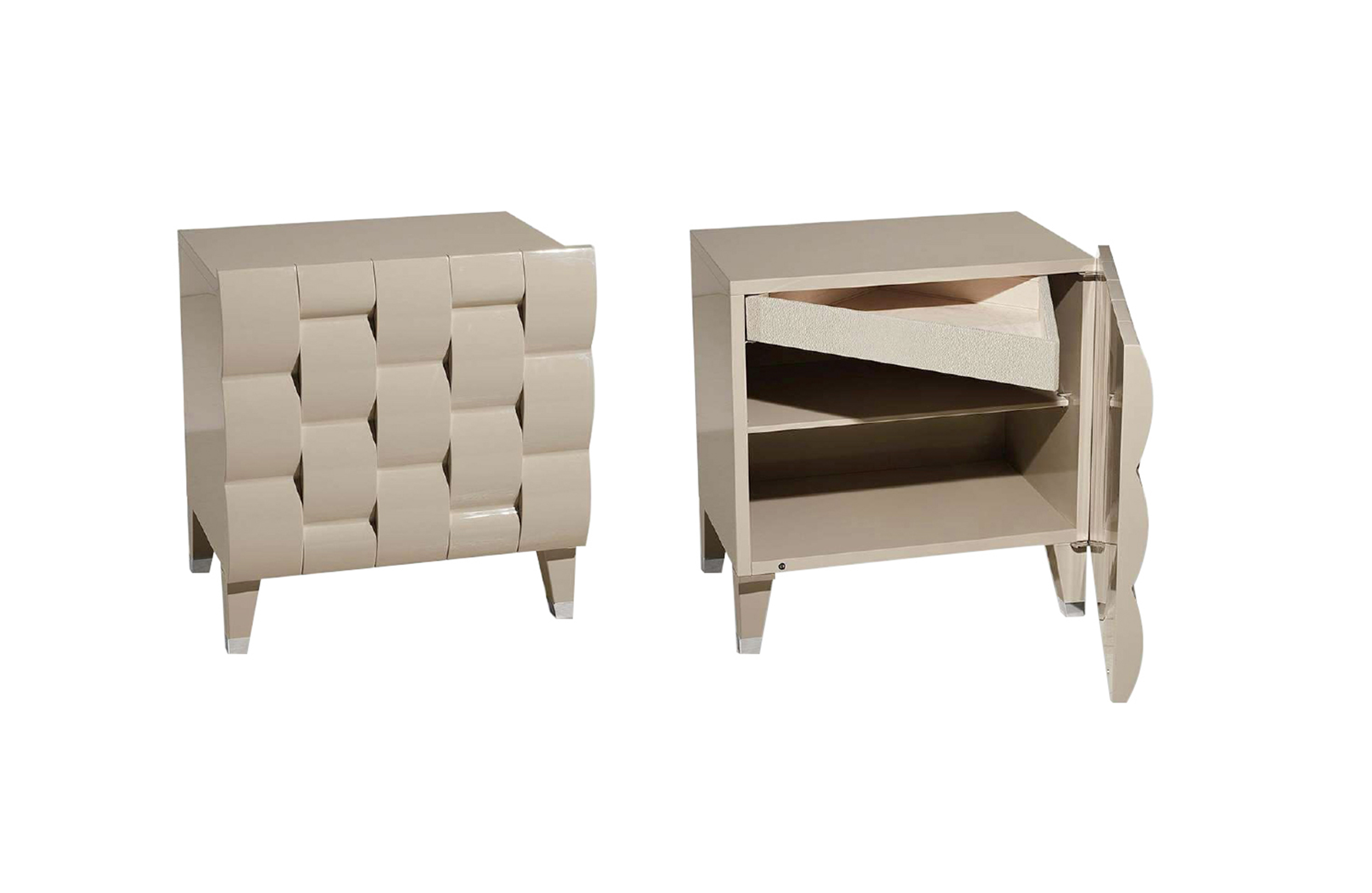 SHUTTER / DRAWER Wood with wavy effect three-dimensional pattern, covered in leather or with glossy lacquered finishing