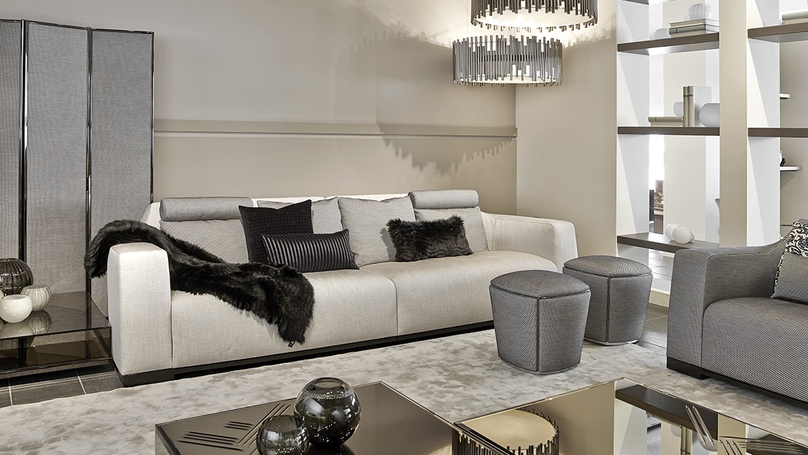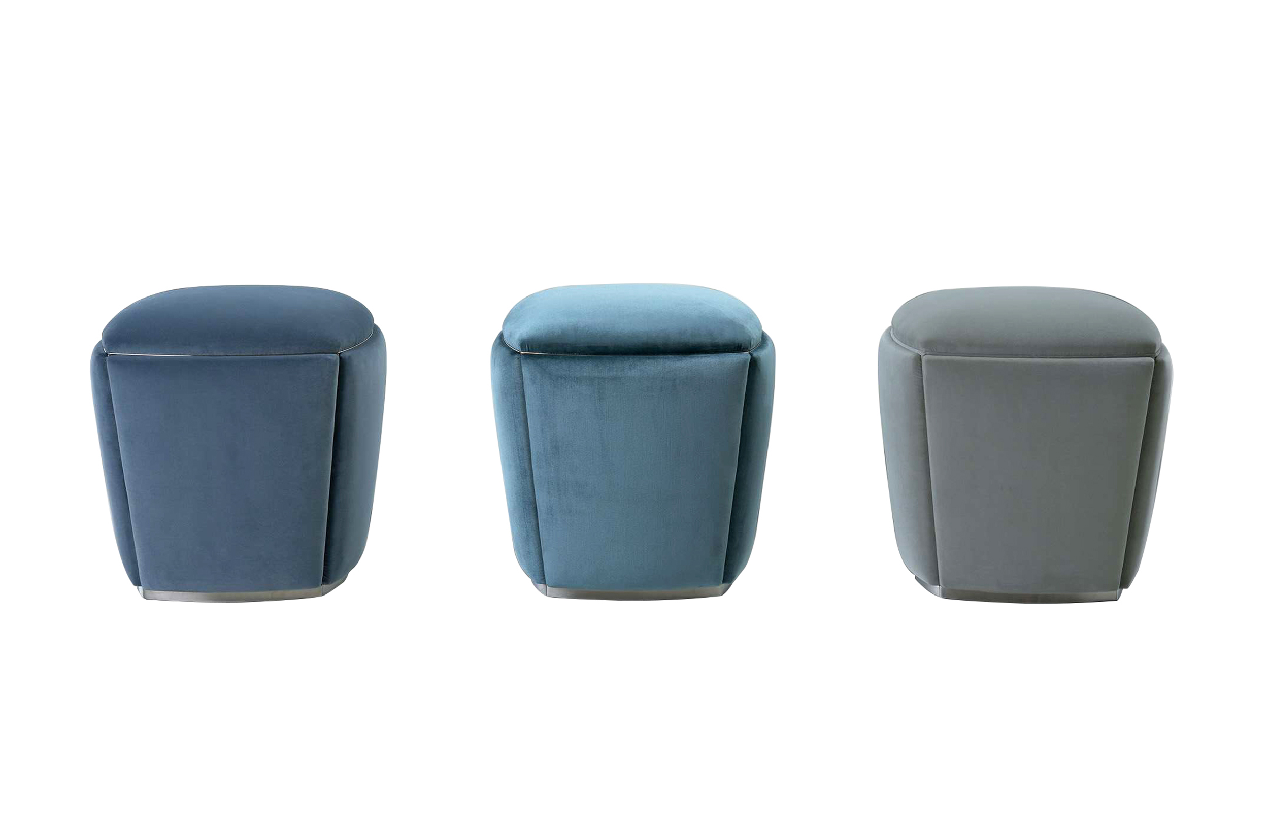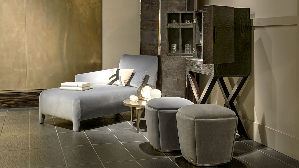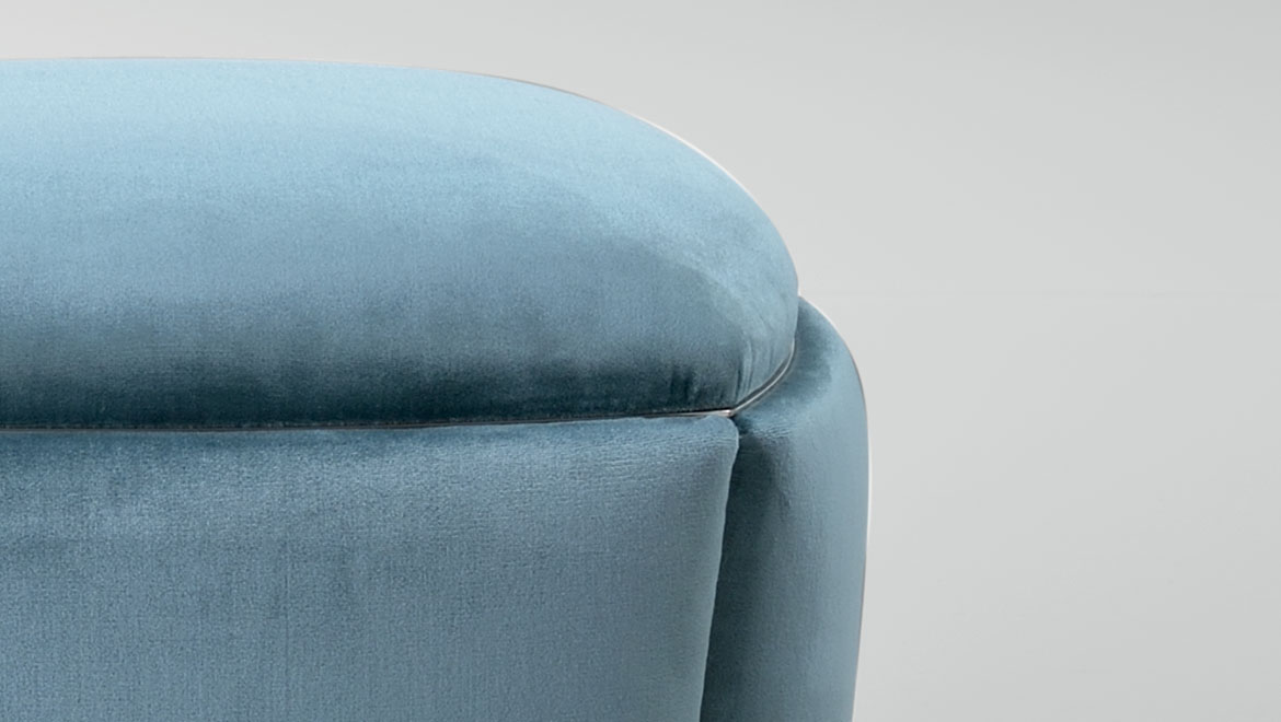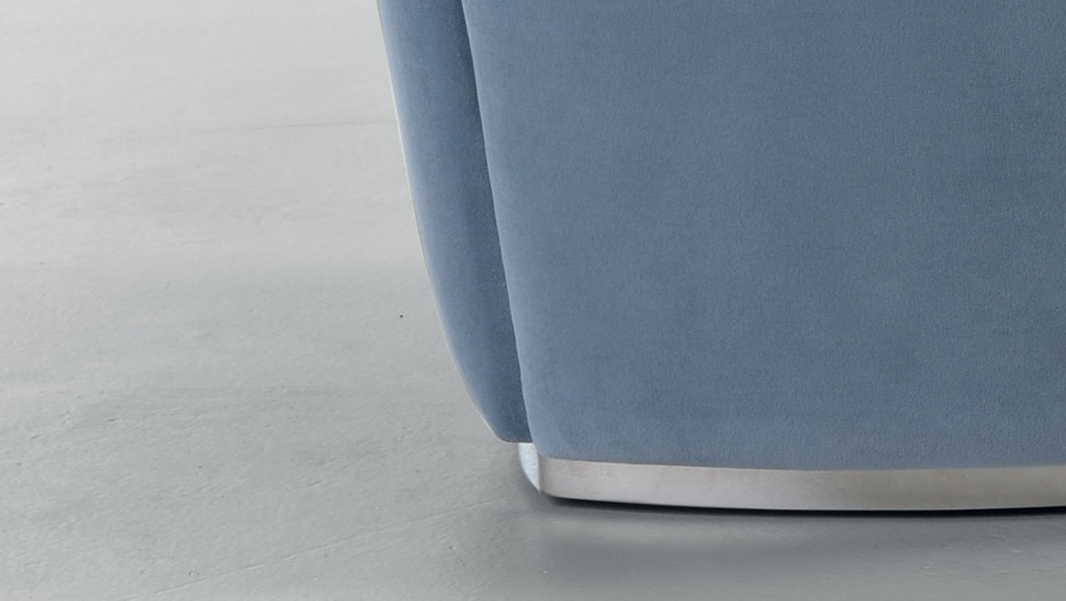 FRAME/SEAT Wood padded with Polyurethane and Fiberfill. Polished steel profiles or covered in coordinated fabric or leather