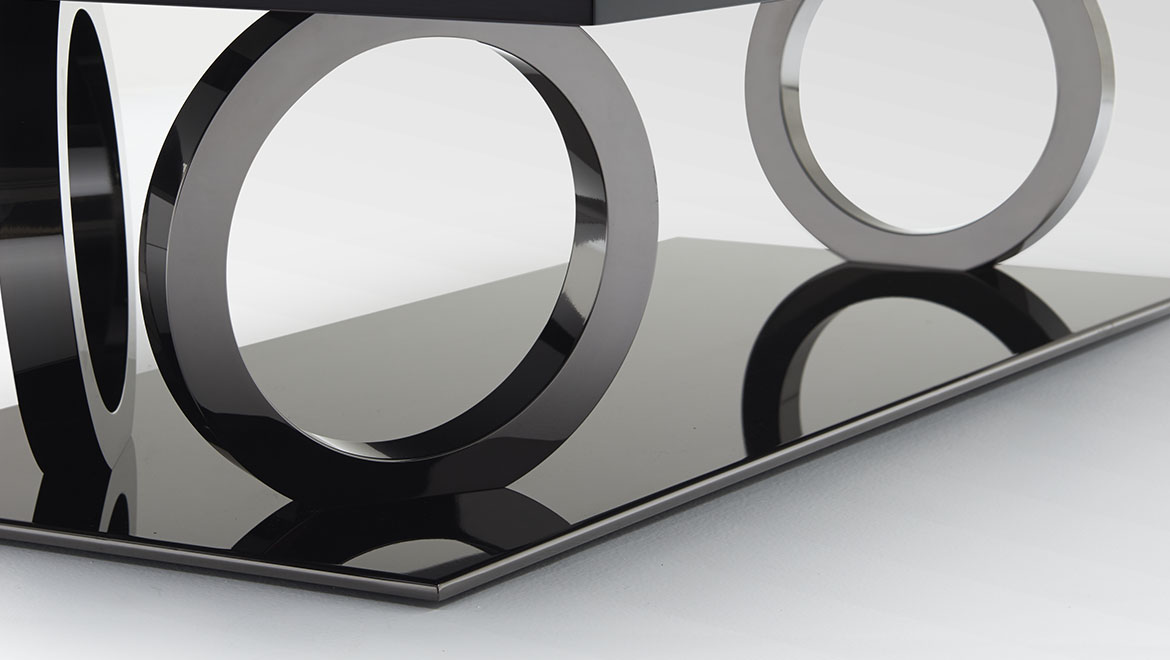 TOP Lacquered wood or veneered with Ebony Macassar, Rosewood or Rosewood Dark* with glossy brushed finishing (veneering inlays 4/4)
