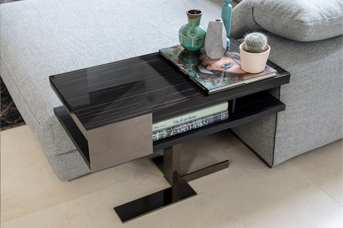 多种配件材料的爱尔斯是多功能的:可以放在墙边或沙发后面,而小桌子可以用作沙发扶手旁边的边桌,也可以用作服务桌。
