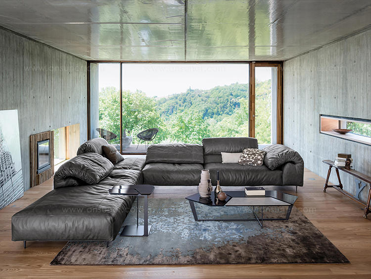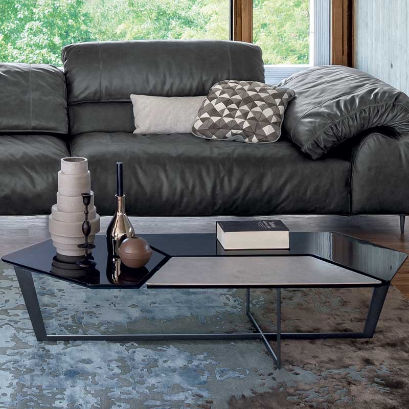 纳尔逊咖啡桌的主要特点是它的桌面。桌面被一个很深的缝隙分开但它们是由结构组成的。将木头和皮革等温暖的材料结合在一起组合成了不规则的几何形状的桌面。托斯卡纳传统的蔬菜鞣革是一种以多种颜色、独特香气和小瑕疵为特点的天然产物。