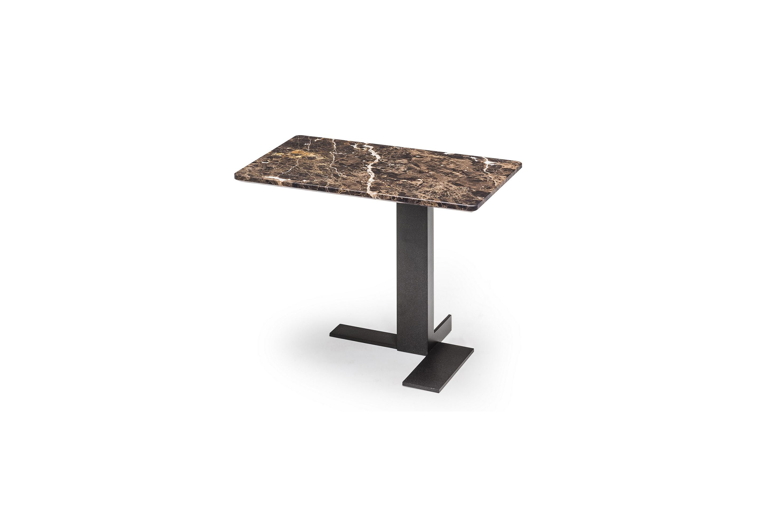 这些小桌子的外形很有吸引力:不同寻常的对比,柔软的和刚硬的组成部分共存,传达出和谐的、国际化的风格。它们可以像小行星一样被放置在房间里。有三种桌面可供选择:圆形、方形和长方形,桌面材质为大理石或砂岩,也有钝边的熏玻璃桌面。金属基材有云母棕,氧化灰或黑镍。