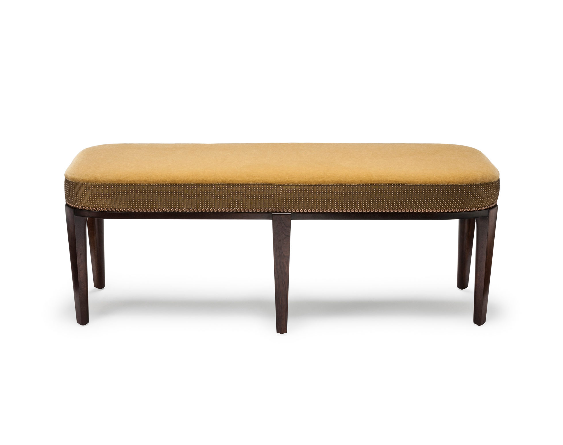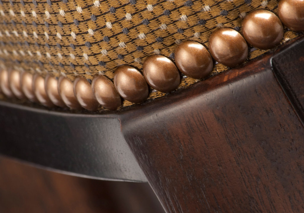 Babo是一款简约优雅的凳子,手工雕刻的美国黑胡桃木或橡木腿,以及围绕座椅的装饰钉。