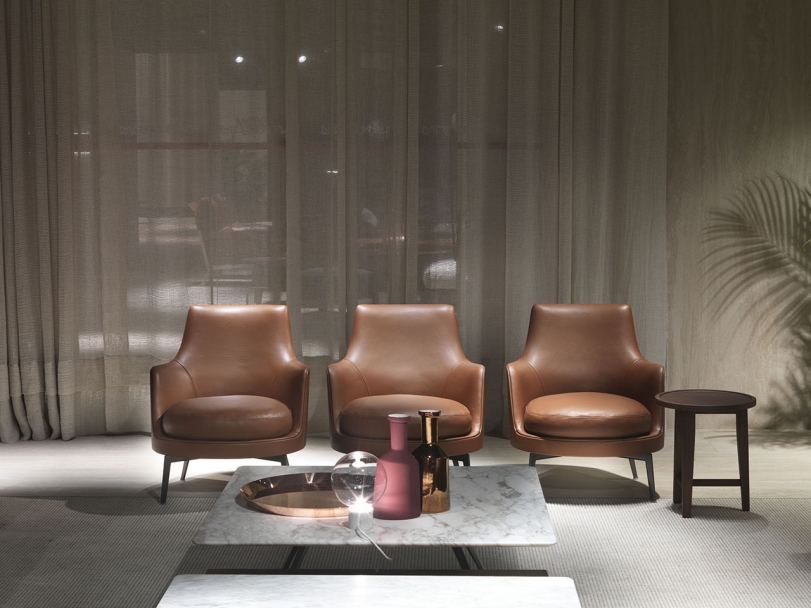 Guscio SOFT是Flexform的扶手椅,框架采用硬质聚氨酯。 座垫采用弹性内芯羽绒。 Guscio SOFT有多种面料或皮革面料可供选择,是任何家居的理想选择,增添舒适而时尚的座位。
