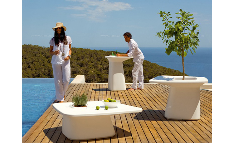 MOMA系列, 是西班牙著名设计大师Javier Mariscal 为VONDOM 设计的一系列户外产品。在决定创造一个新的家具概念-将花盆和户外桌子功能二合一的家具,MOMA就此诞生了,一个以多功能和独创性为特点的系列。然后在疑问:“我们怎么坐?”后,产生了可以适合不同气氛环境的三个版本,一个是休闲的,LOW,配套了同一系列的很舒适的矮座,另外一个是可以坐在一个椅子或者凳子来配置使用的,Medium ,左后的版本就是可以站起来或者坐在一个高凳来配置使用,HIGT。在设计的时候,灵感来自于自由空气下欣赏一杯清爽的饮料。最初的形状是器官的。在随着项目的发展,朝着更建筑学的形状,现在的形状就像一个柱顶或者隅撑,在表面支撑的部位,有一个洞,他的作用是花盆,一个带有VONDOM的自动淋水系统的花盆。其丰富鲜艳的色彩,令这个系列更新鲜,更个性。