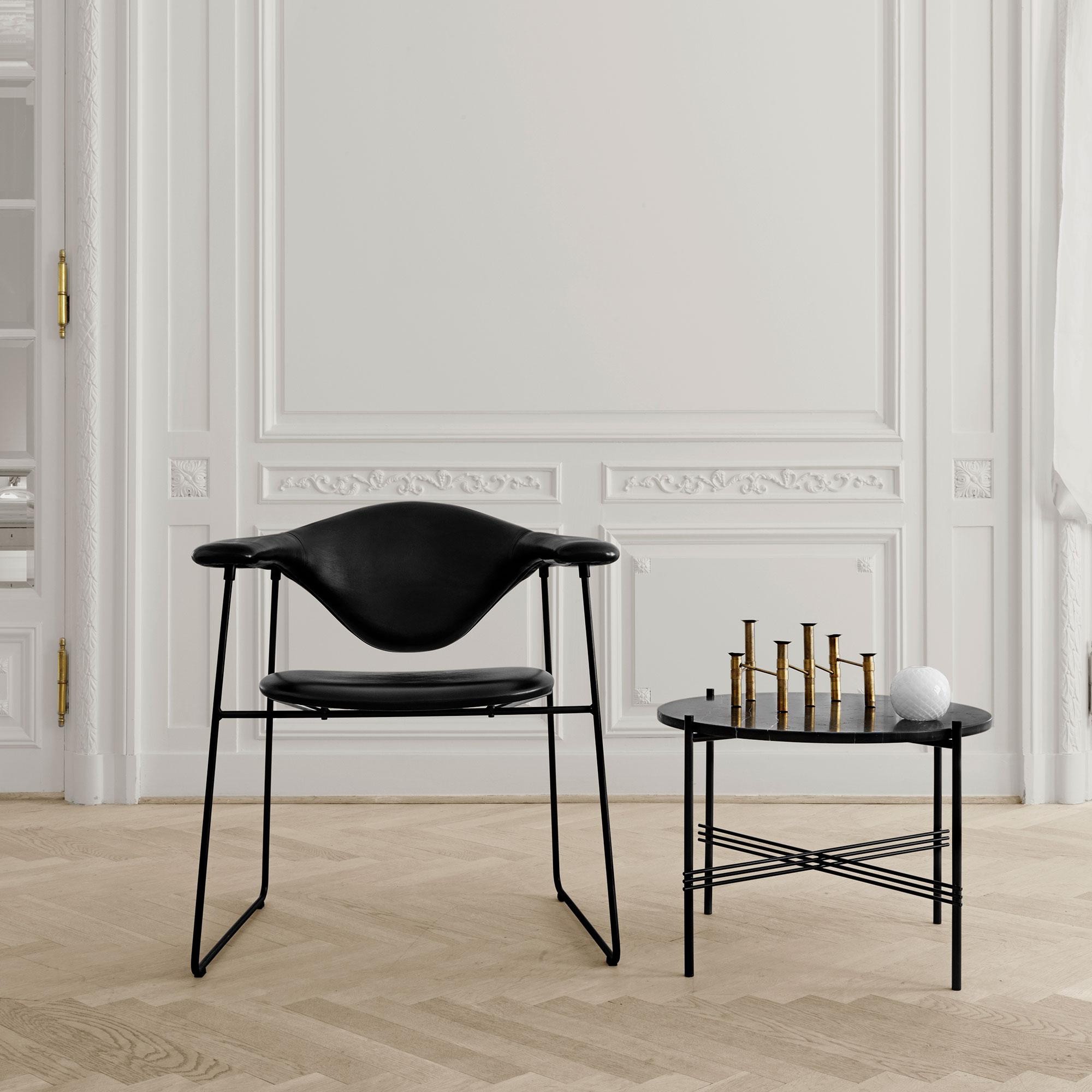 通过GamFratesi的Masculo系列,我们看到了Gubi推出的全新潜在经典家具系列。 Masculo雪橇基座椅采用粉末涂层黑色或铬钢杆结构。 座椅和靠背可以选择布料或皮革装饰。 包括塑料滑动,可根据要求提供毛毡滑动。 还提供不同的基本选择以及休息室版本。