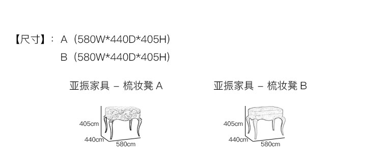 亚振家具 - 梳妆凳 产品尺寸/示意图