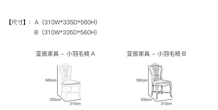 亚振家具 - 小羽毛椅 产品尺寸/示意图
