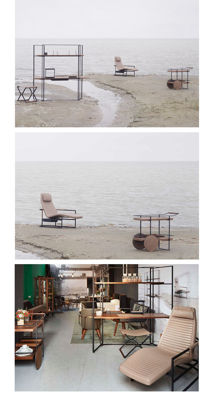 这三件作品都是为了将负空间变成一种审美特征,利用浮动的平面和线框来营造一种光鲜、简洁的氛围。选材上受全球汽车工业风影响,选取了具有温润触感的黑色金属、胡桃木和深色调哑光皮革,细节处渲染出精致本色。