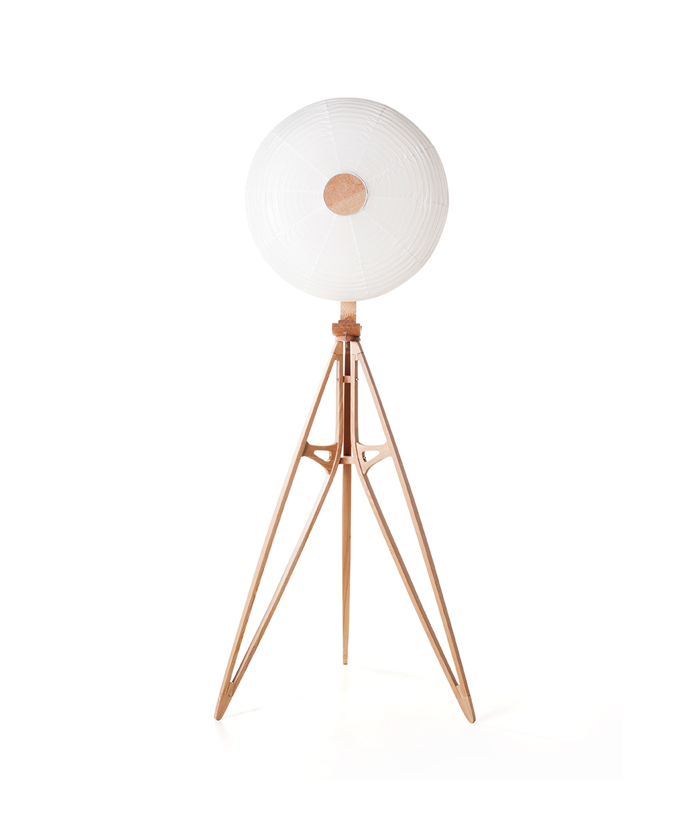 Kyoto系列是取材自核桃木或白蜡木制作的落地灯系列,以致敬京都悠久的木匠工艺和日本航空早期发展史。这款落地灯的结构设计灵感源自日本玩具飞机的精妙构造,设计师遴选出其中最为特别的一款作为设计参考,它是曾参与过1911年日本航模比赛的吉田飞机,它是一款装有双逆向推进器的A字型飞机,当时因成功飞越东京隅田川而闻名。